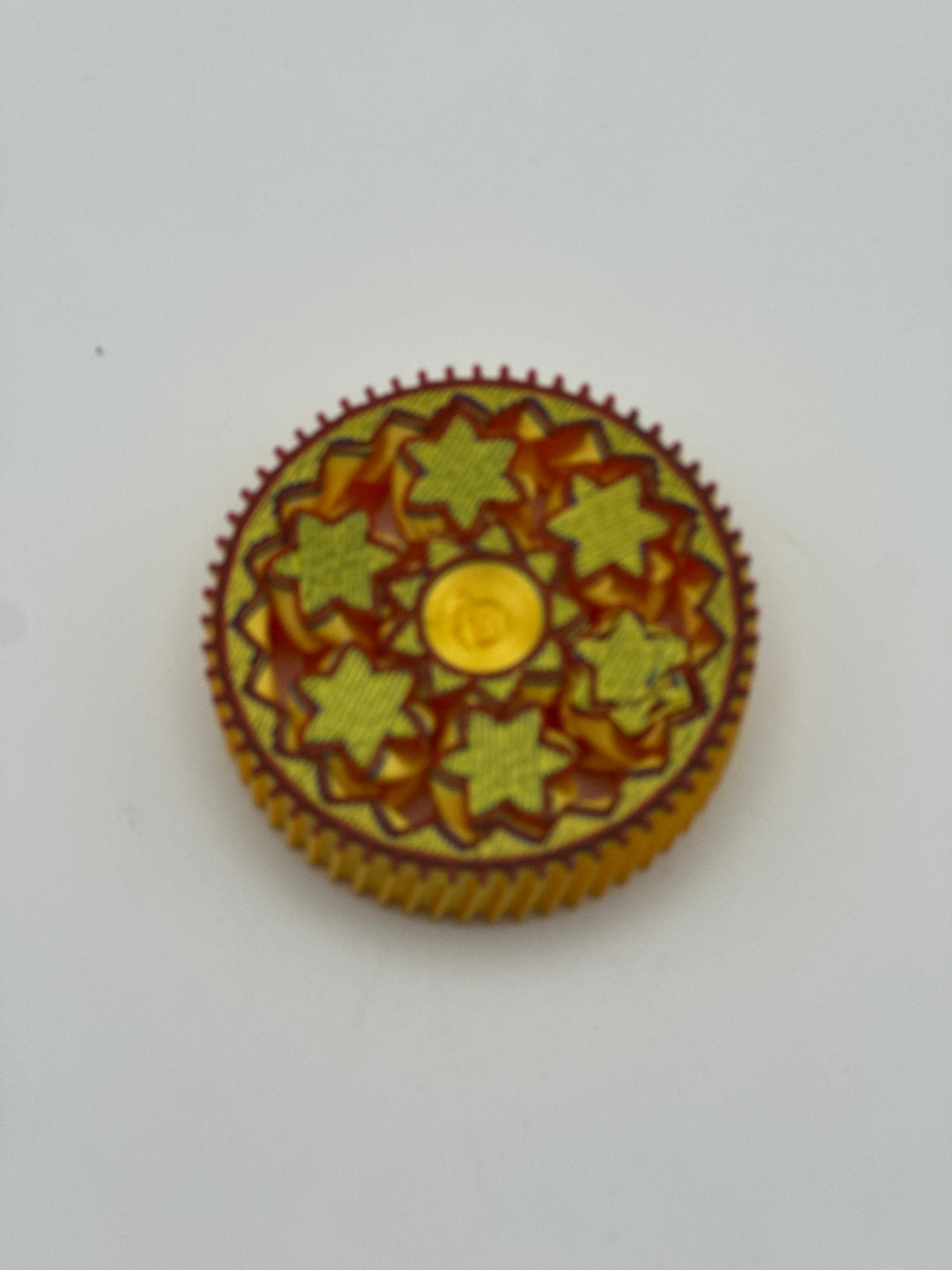 Get your stress spinning away with our Anti-Stress Fidget Spinner. This 3d printed spinner features a unique gear design for a satisfying spin. Sized at approximately 2.25” diameter x 0.75” wide, it's the perfect companion for on-the-go relaxation. (Stress relief has never been more fun!)
