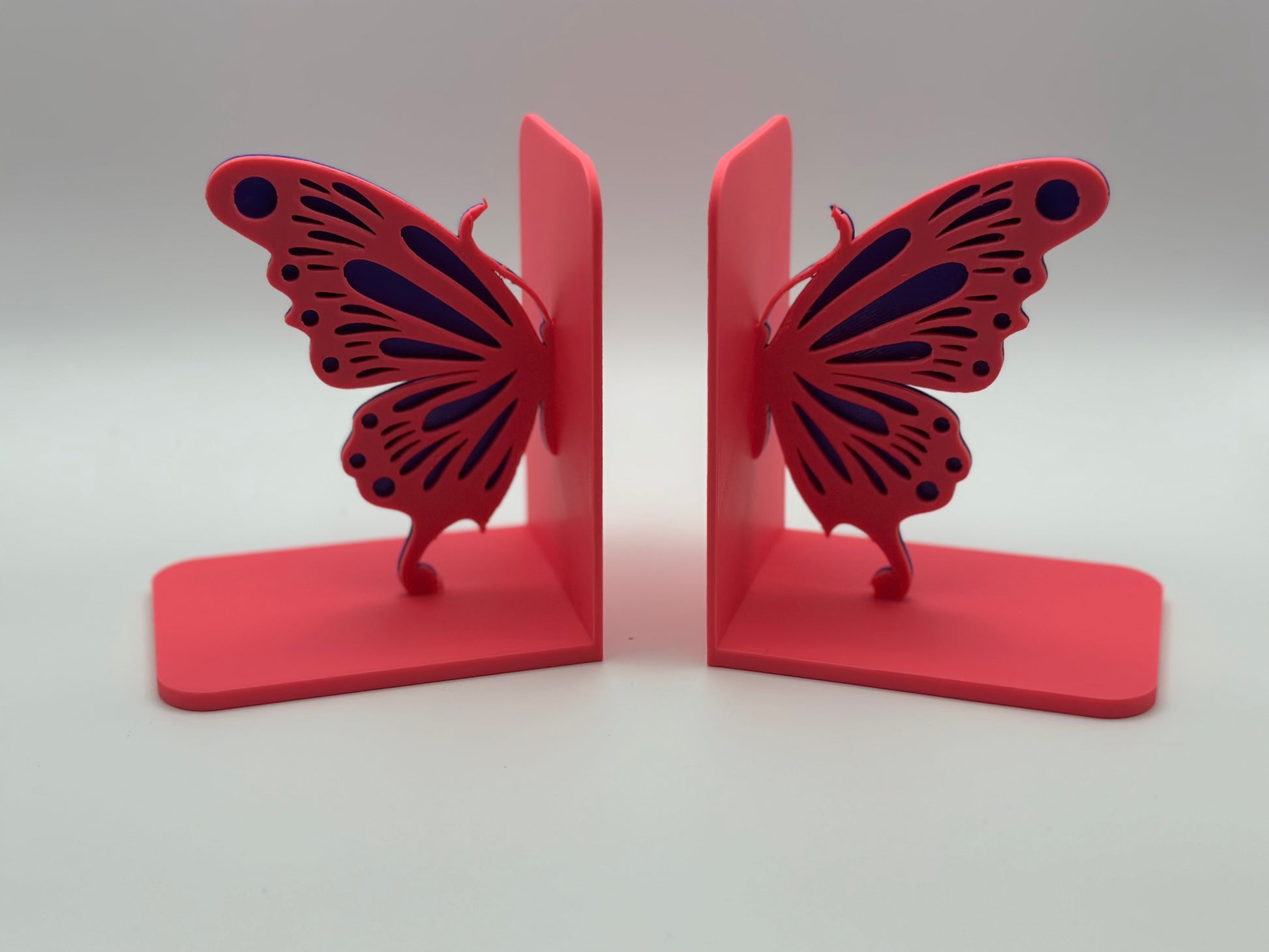 Add a touch of whimsy to your bookshelf with our 3D printed Butterfly Book Ends! This set of 2 features intricately designed butterfly halves, measuring approximately 7.5" x 2.8" x 4.25" when placed together. Bring a unique and charming element to your home decor with these beautiful bookends.