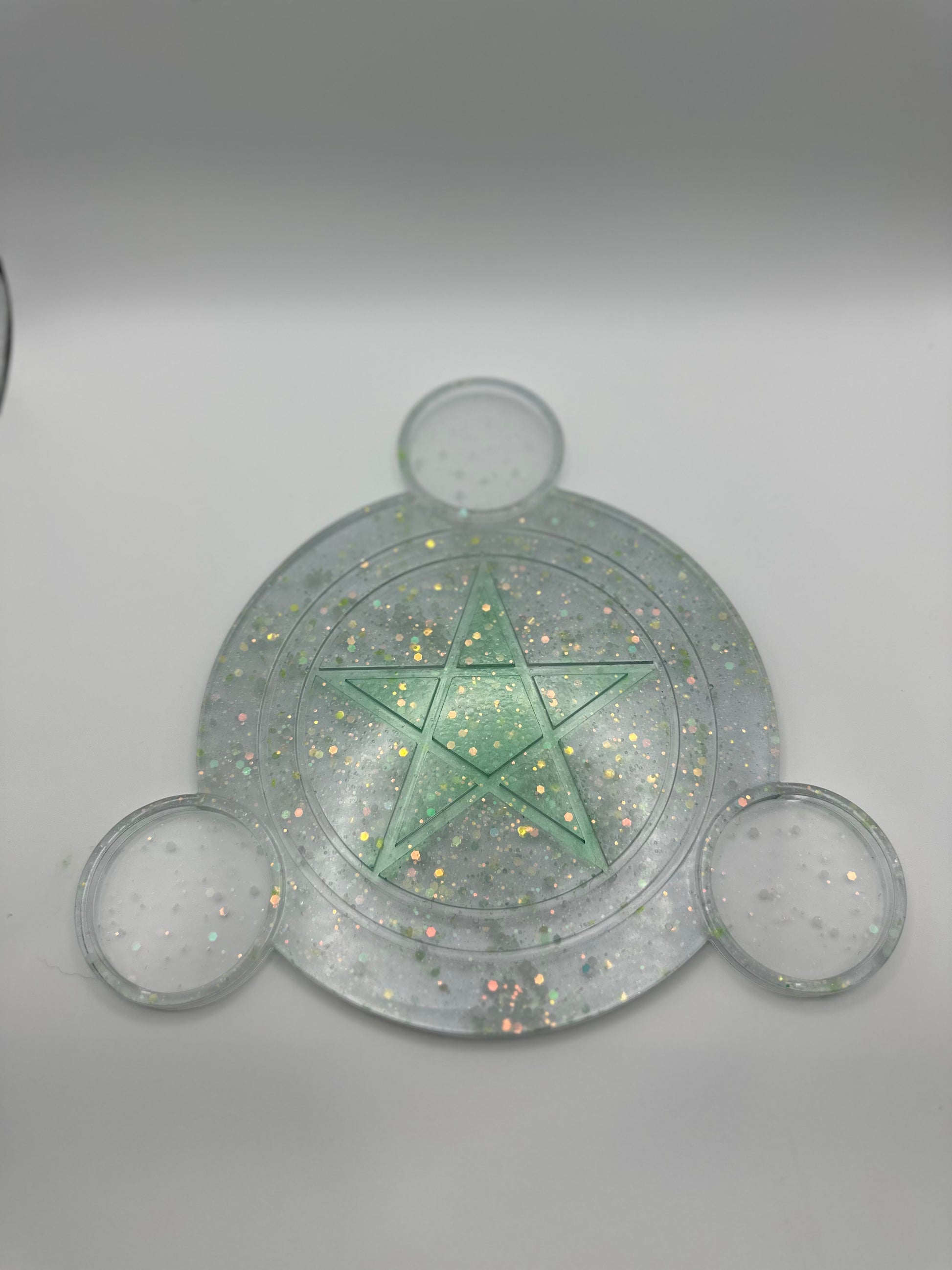 Add a magical touch to any room with our Candle Tray! Made from high-quality resin, this tray features a unique pentagram design and can hold up to three votive candles. Create a cozy and inviting atmosphere while adding a touch of mystical charm to your decor.