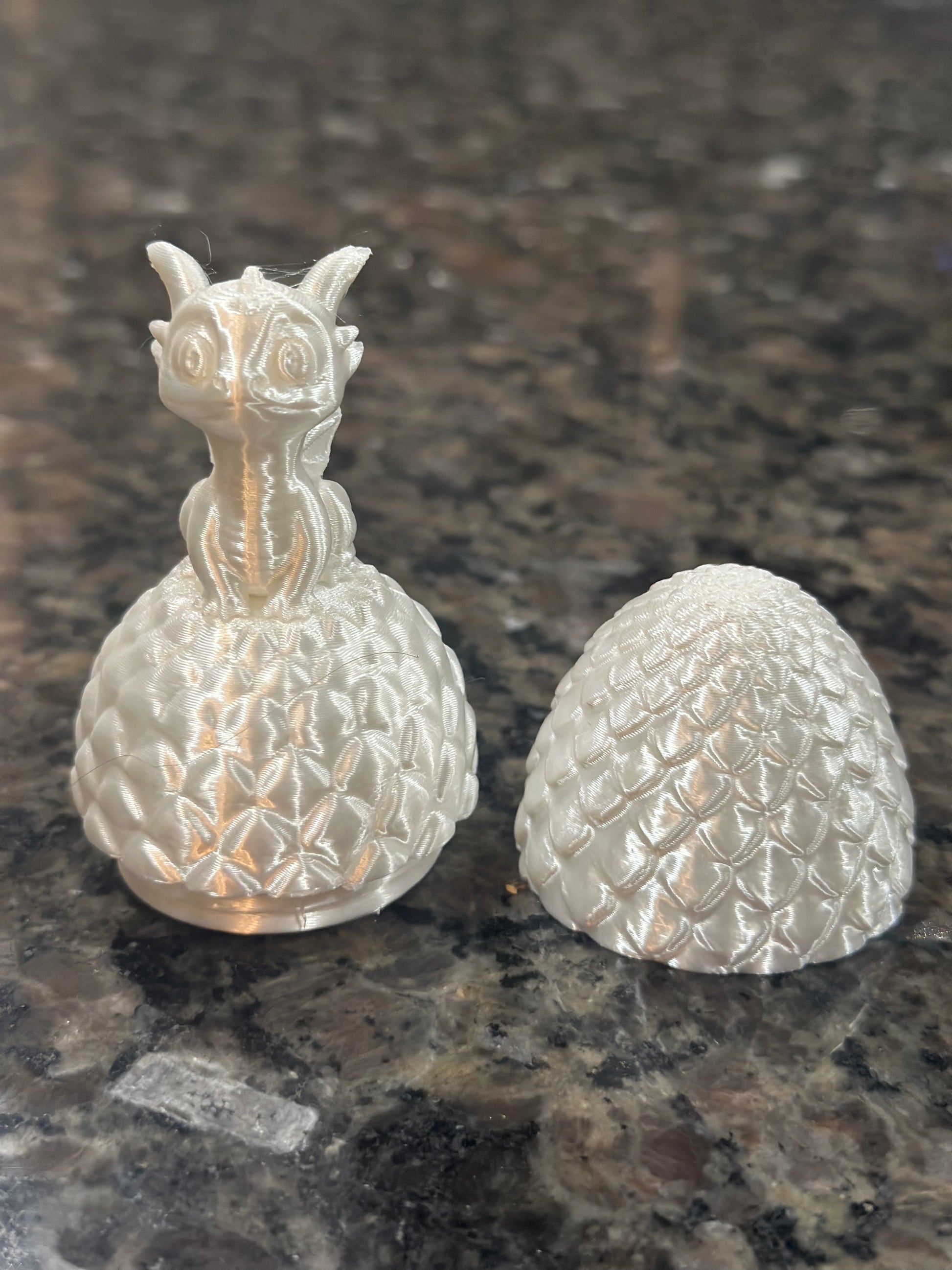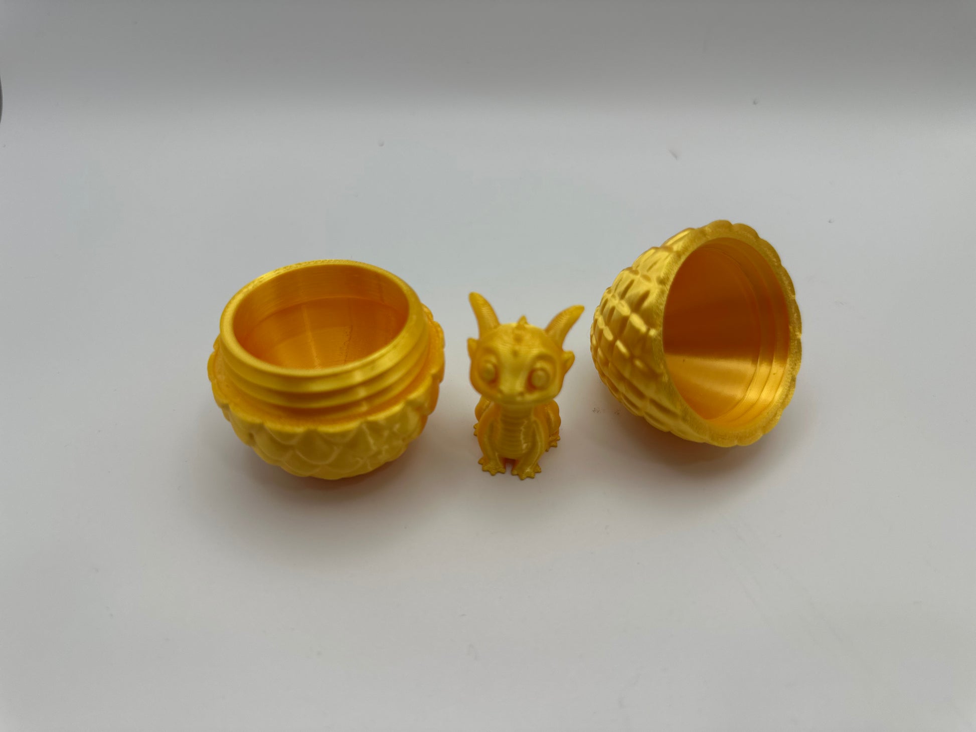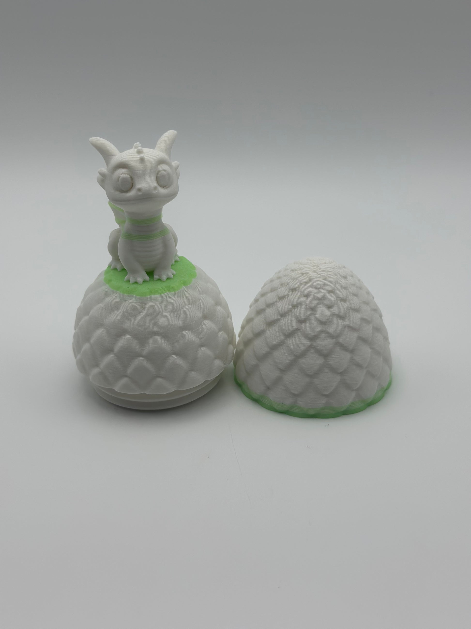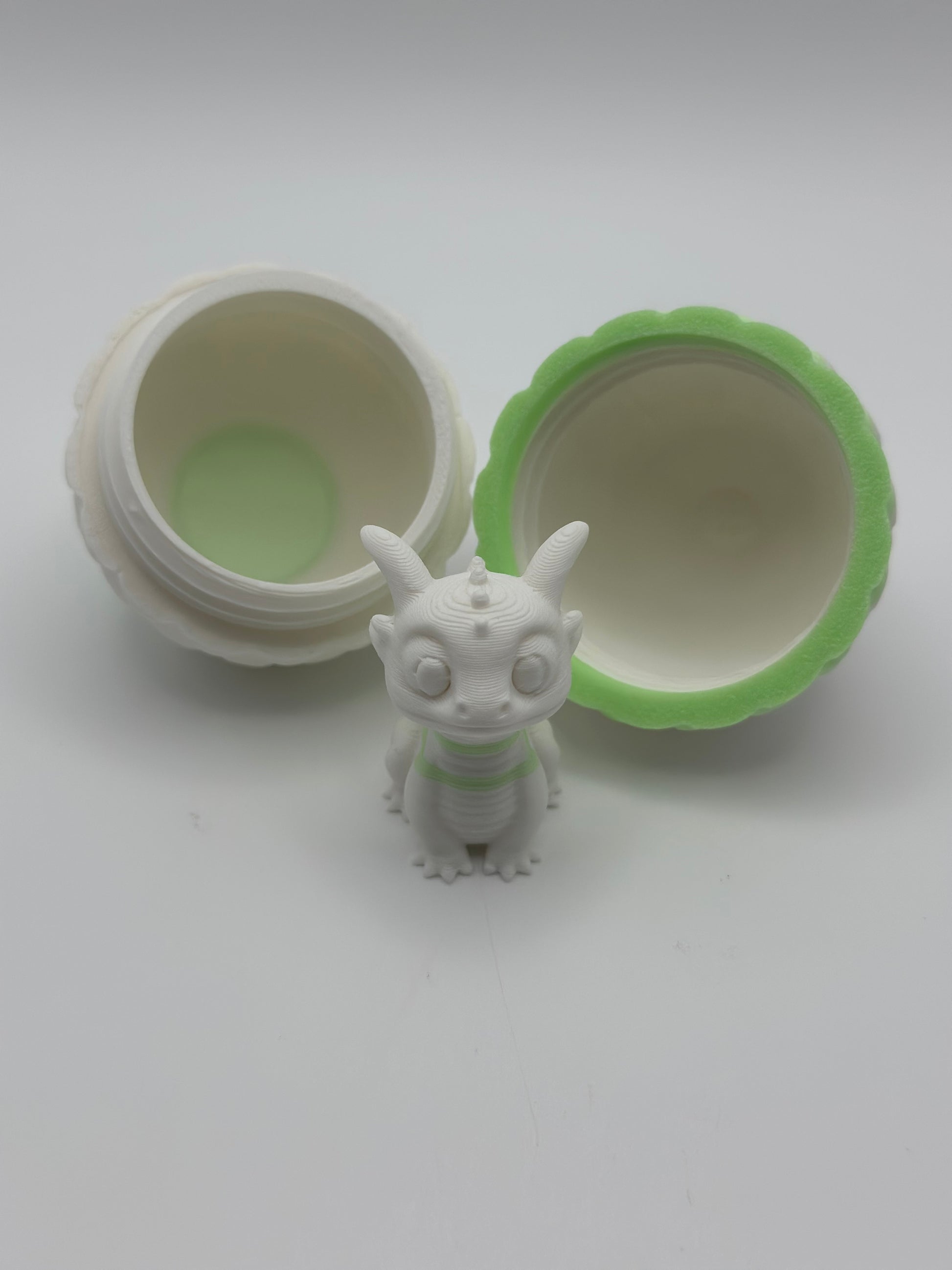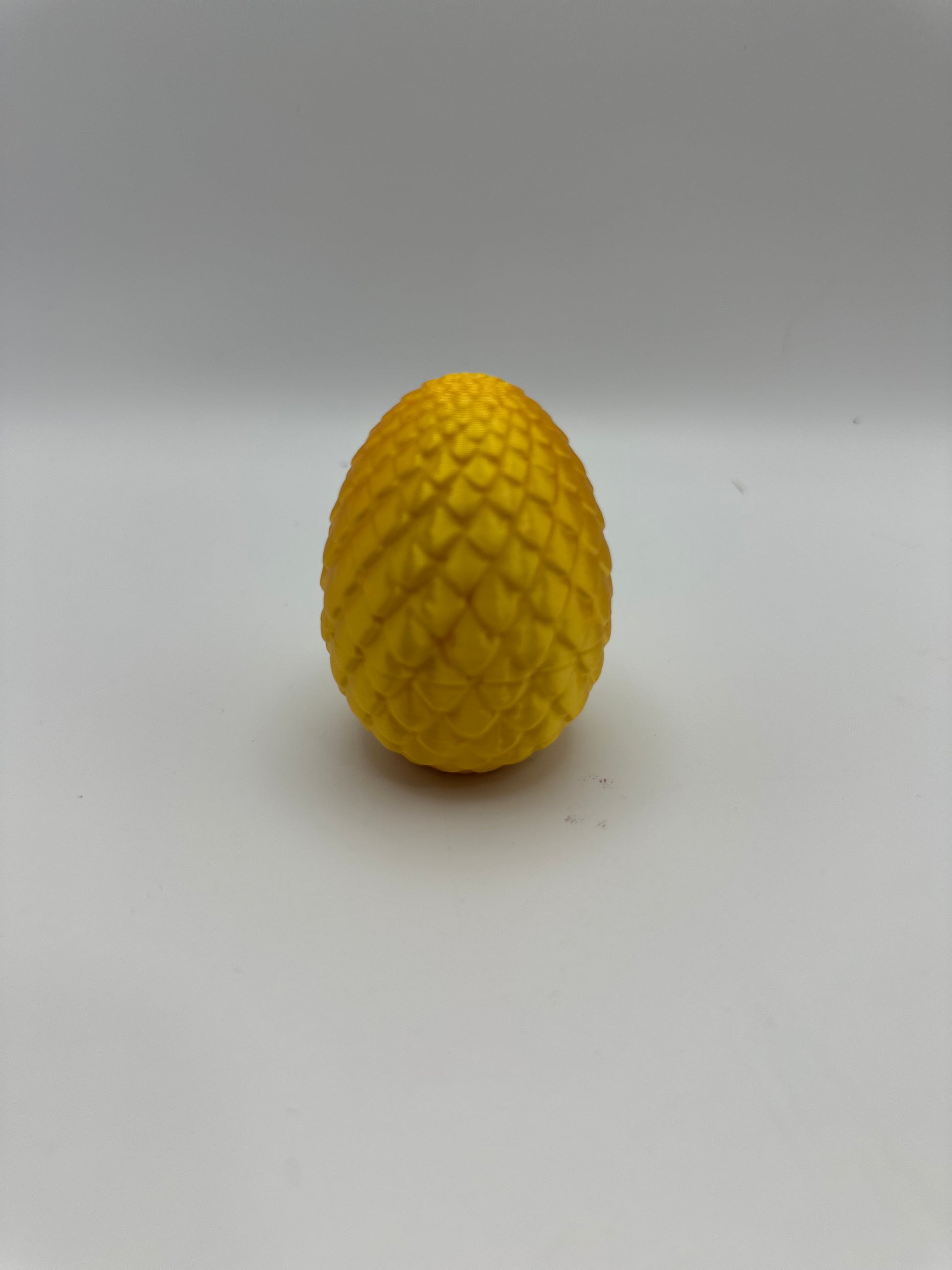 Hatch your imagination with this 3d printed Dragon Egg, complete with a surprise inside - a baby dragon! Bring a touch of magic and whimsy to your space with this unique and playful addition. (Don't worry, no fire-breathing here.)