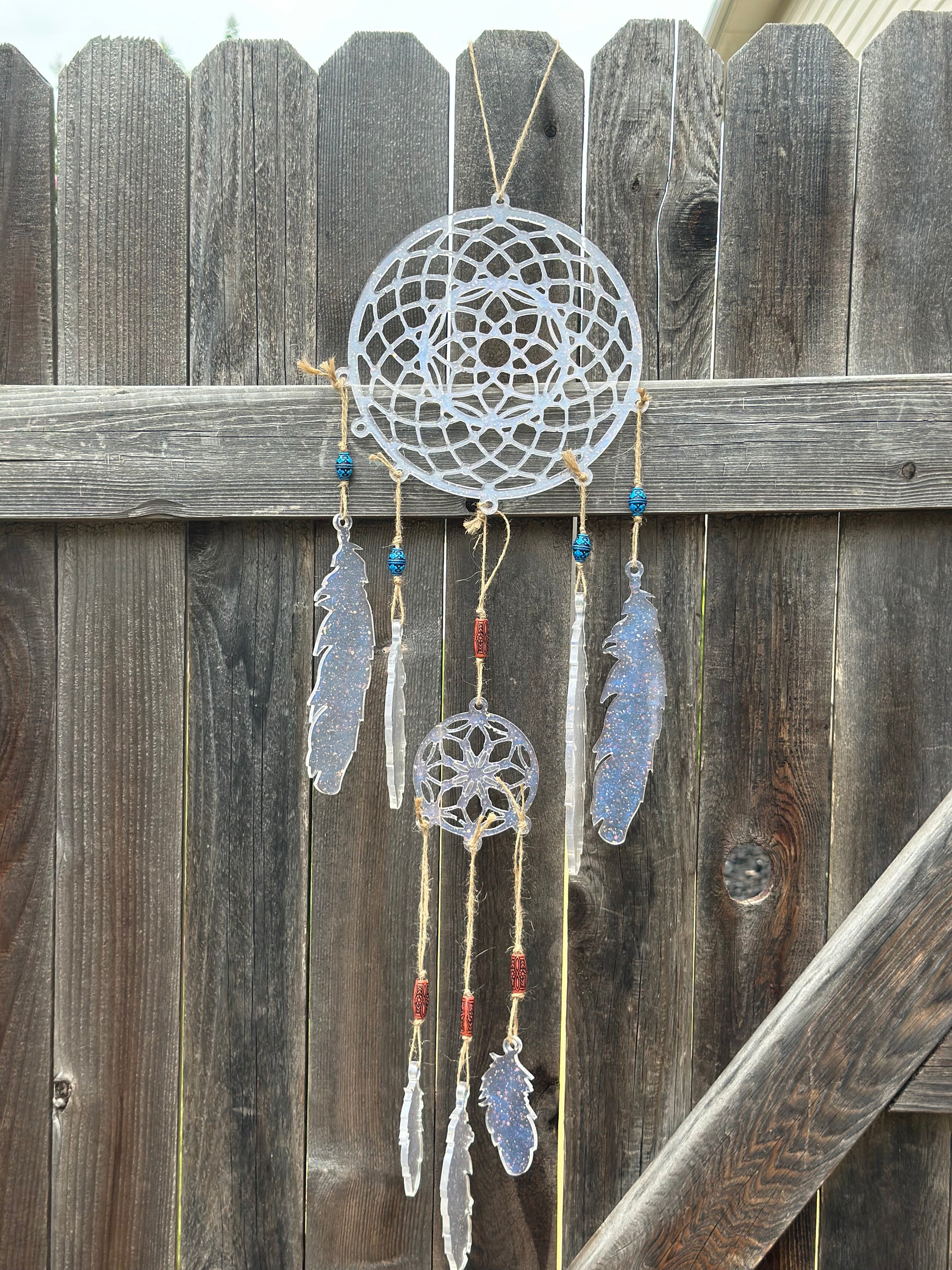 Unlock your dreams and manifest your desires with Dream Catcher. Our handcrafted resin design captures negative energies and replaces them with positive vibes, bringing balance and harmony to your space. Embrace your inner potential and soar towards your goals with Dream Catcher.