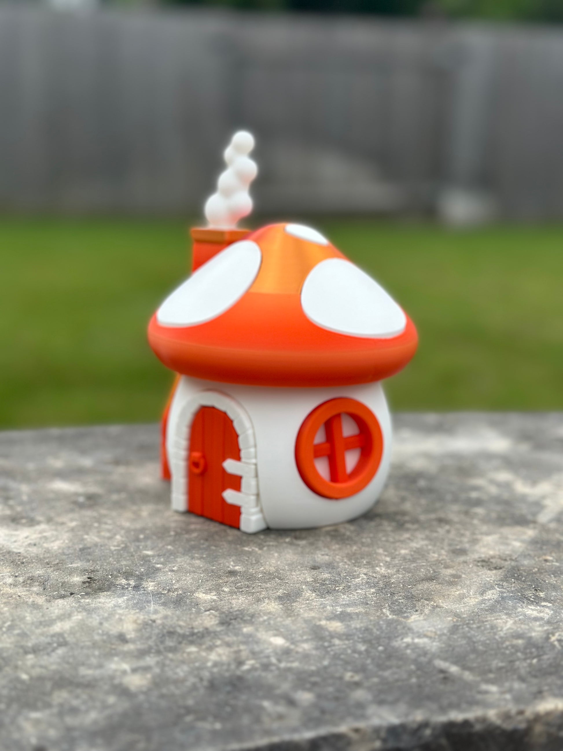Step into whimsical wonder with the Fungi Cottage! This 3D printed mushroom-shaped home stands at approximately 5" in diameter and 7" tall, with a charming door that opens to reveal a hollow interior. Perfect for adding a touch of enchantment to any room. (Fungi puns not included.)