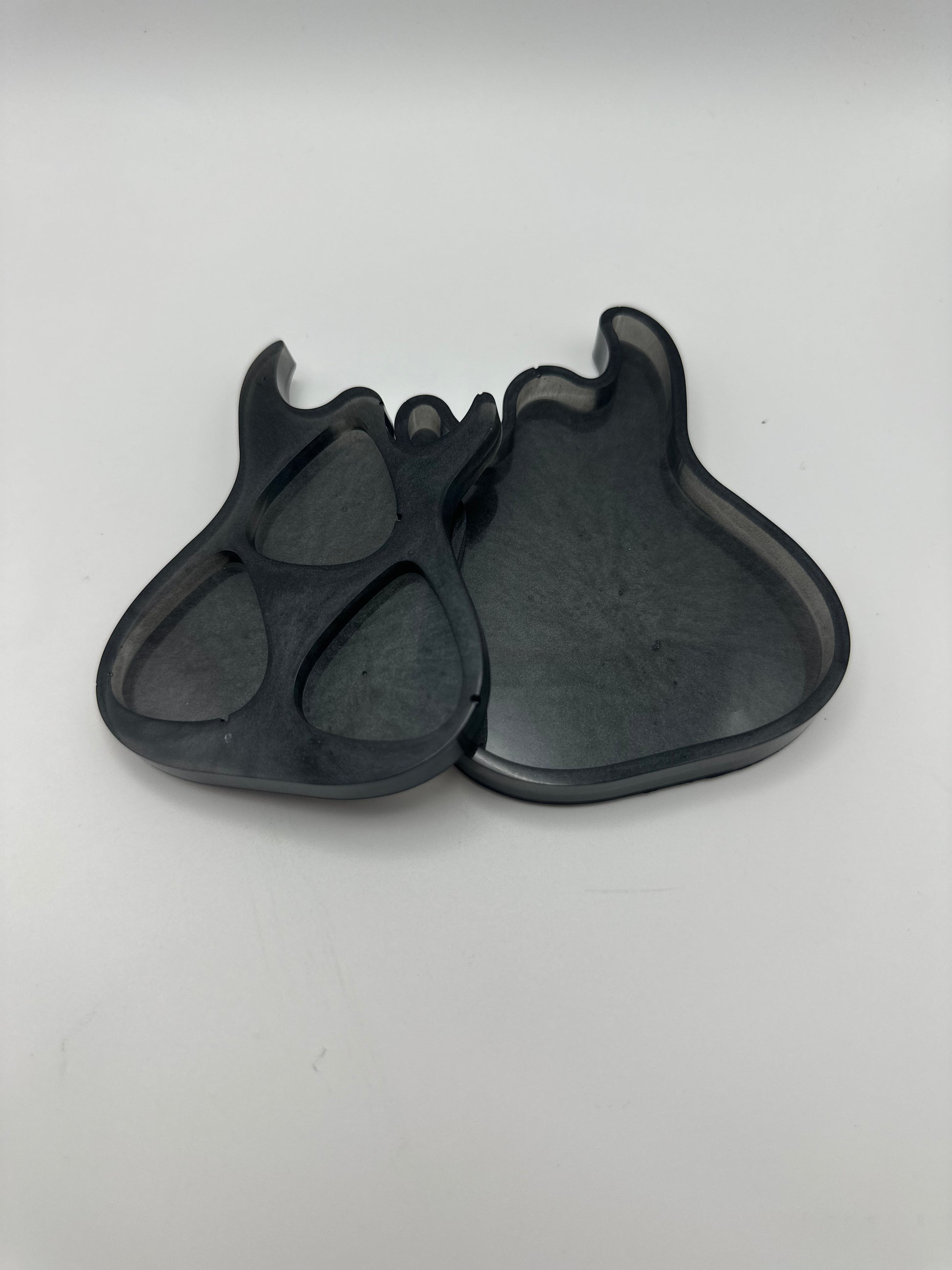 Strum your way into the coolest storage solution with our Guitar Pick Box! Crafted from durable resin in the shape of a guitar, it holds up to 3 picks for all your rockstar needs. Never lose your picks again and add a touch of rock and roll to your collection!
