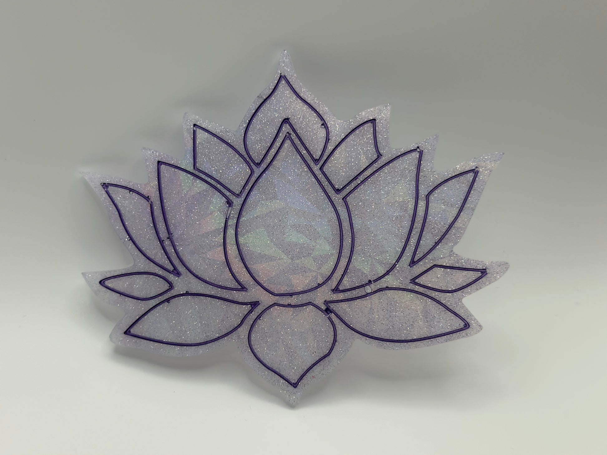Elevate your decor with our stunning Holographic Lotus Flower. Crafted from durable resin and featuring a captivating lotus flower shape, this piece will add a touch of whimsy and magic to any room. The holographic design will bring your space to life, making it a true statement piece that will delight and inspire.