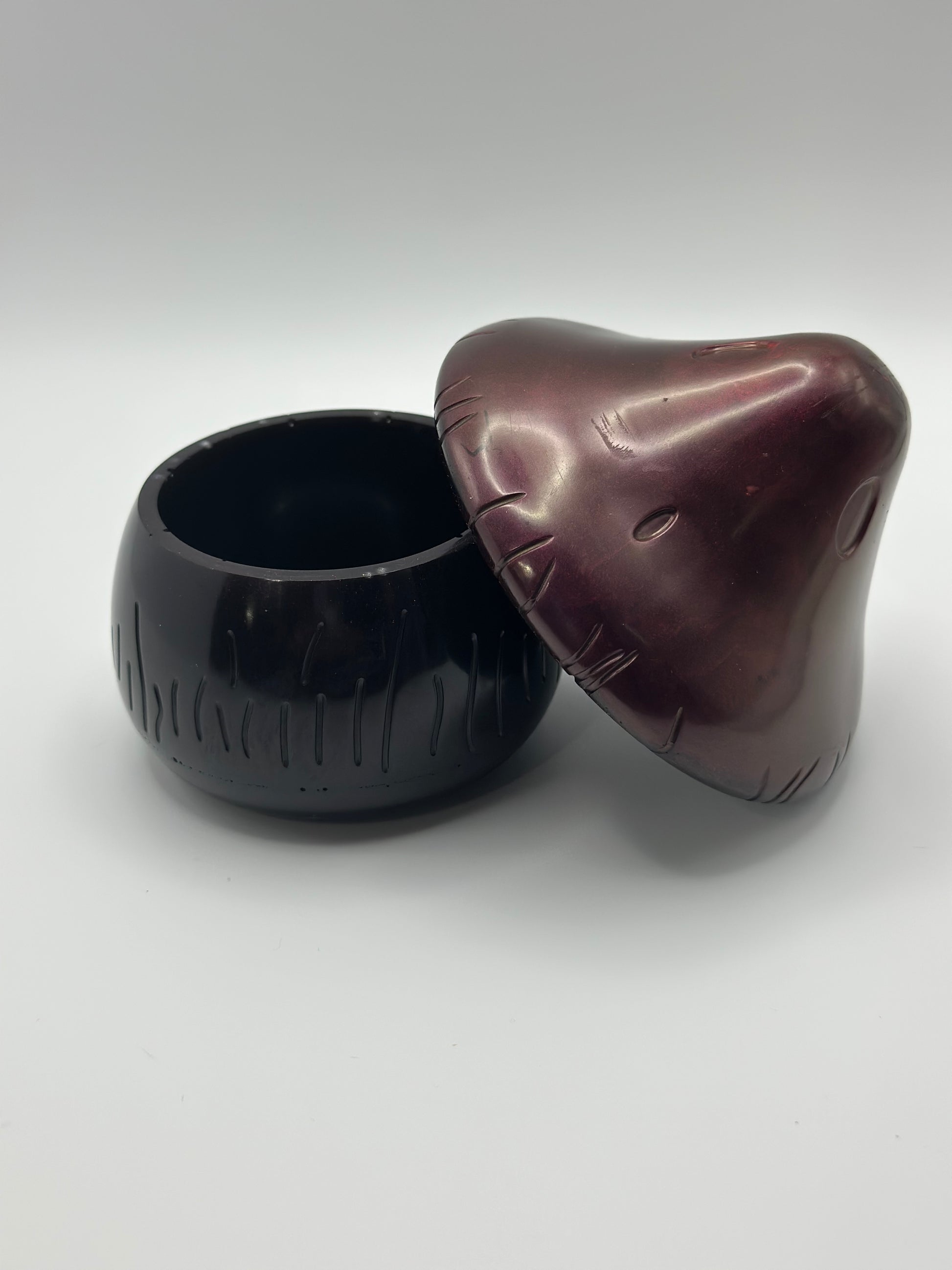 Introducing the Large Mushroom Jar, the perfect addition to your home decor! Made of durable resin, this jar adds a touch of whimsy with its 4" diameter and 4" height. Display by itself or use it to store small trinkets. A fungi-tastic choice for any room!