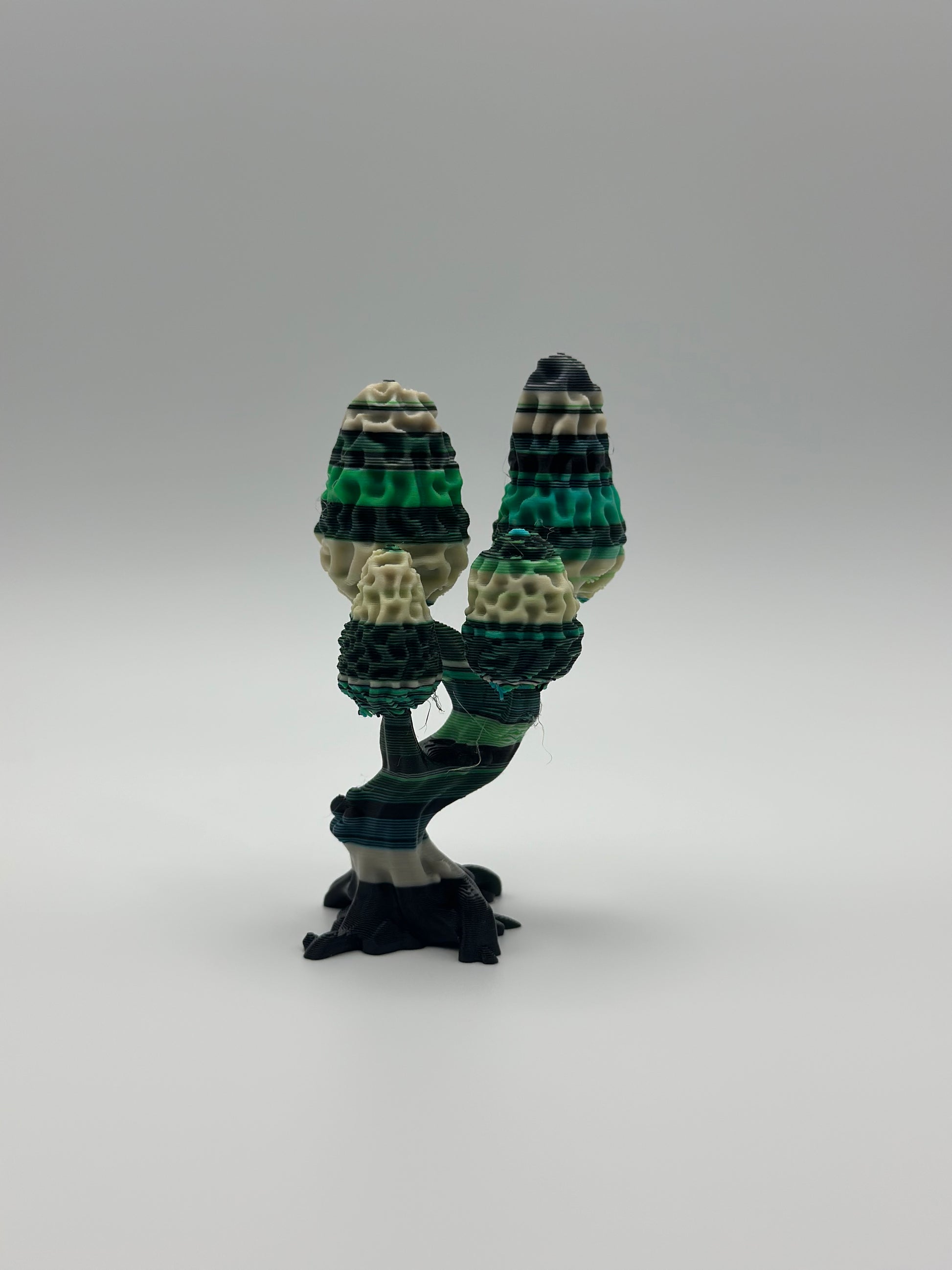 "Add a whimsical touch to your home decor with this Large Mushroom Tree. Standing at approximately 2.5" wide and 3.5" tall, this 3d printed tree will bring a playful and unique look to any room. Perfect for nature lovers and those who don't take themselves too seriously!"