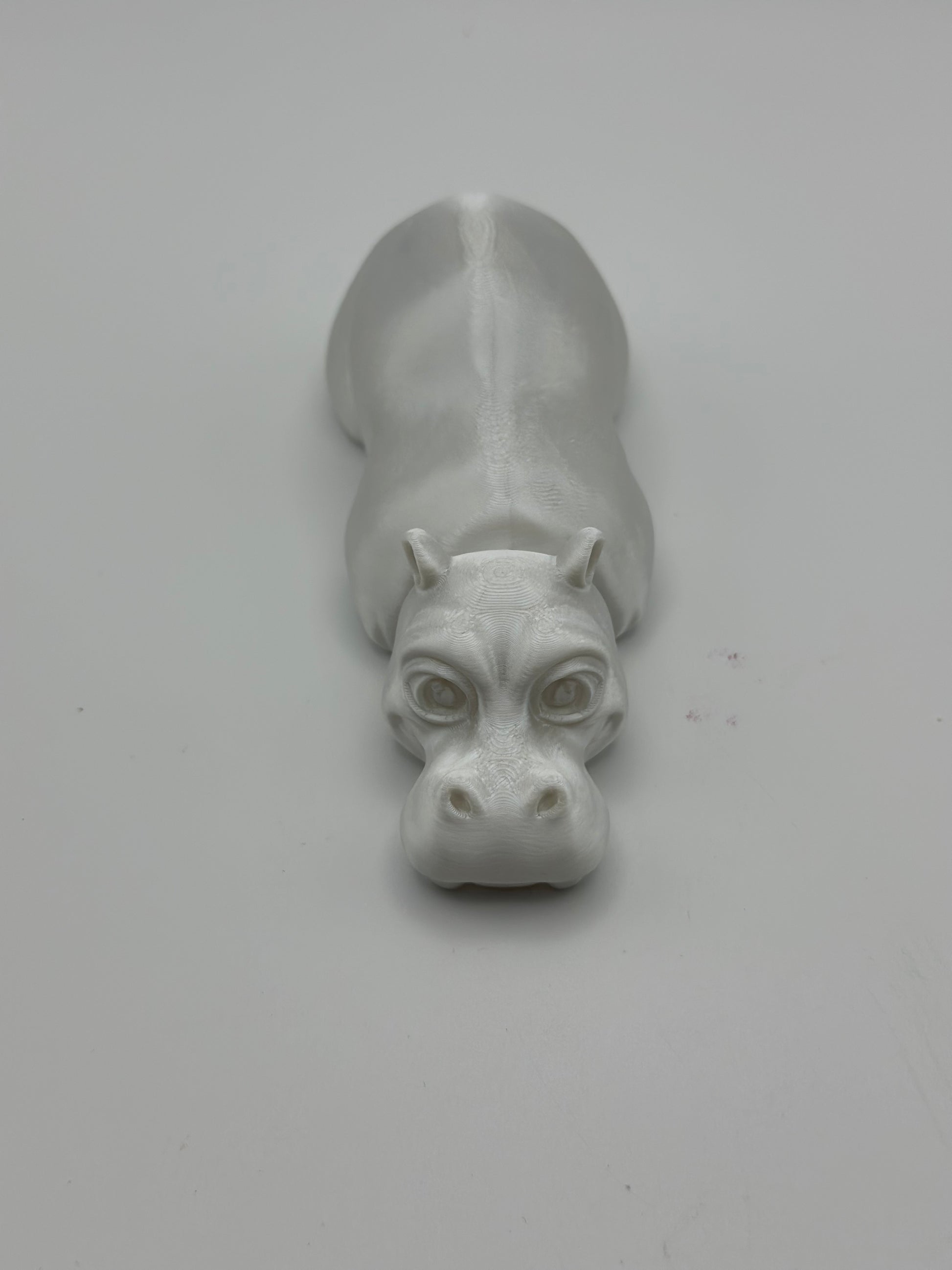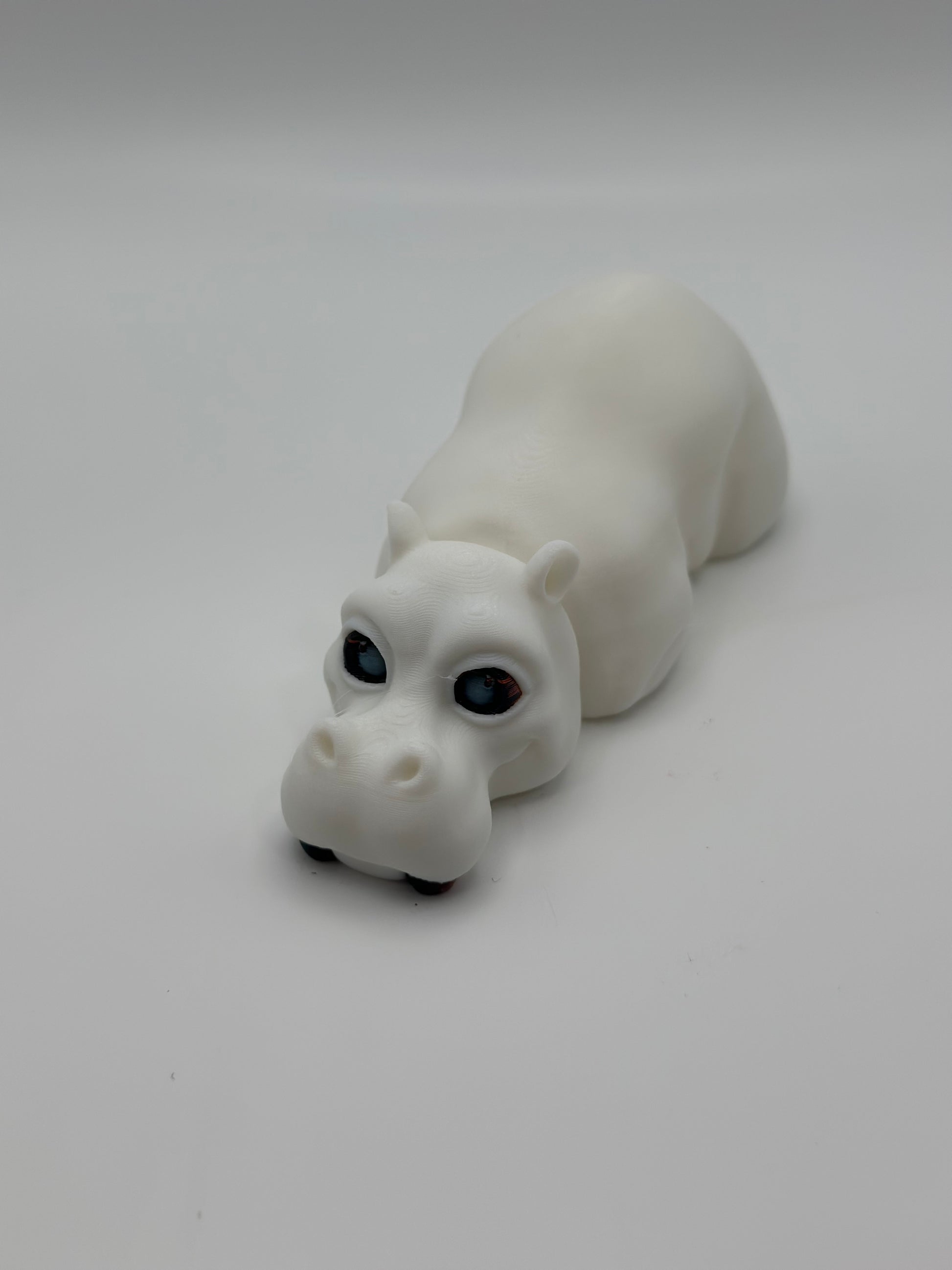 "Get ready to hippo-lay! This 3D printed laying hippo figurine is the perfect addition to any quirky collection. Strikingly realistic with movable head, this hippo is sure to bring a smile to your face (and maybe even a laugh). Hippo-notize your friends with this unique piece!"