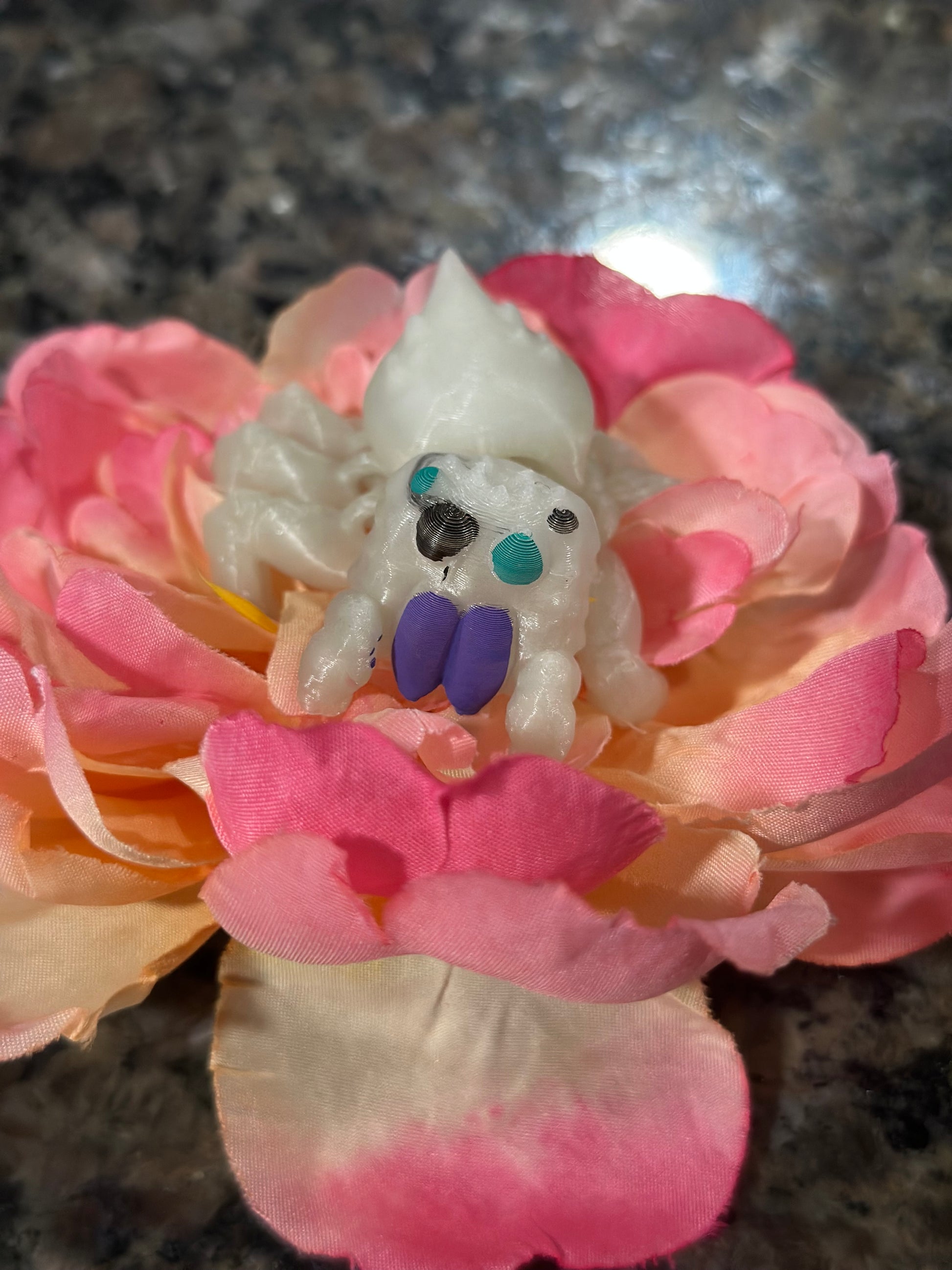 "Get your hands on the Mini Jumping Spider - a 3D printed, articulated wonder that will have you jumping for joy! This quirky critter is full of personality and is sure to bring a playful touch to your space. Perfect for spider lovers and science enthusiasts alike!"
