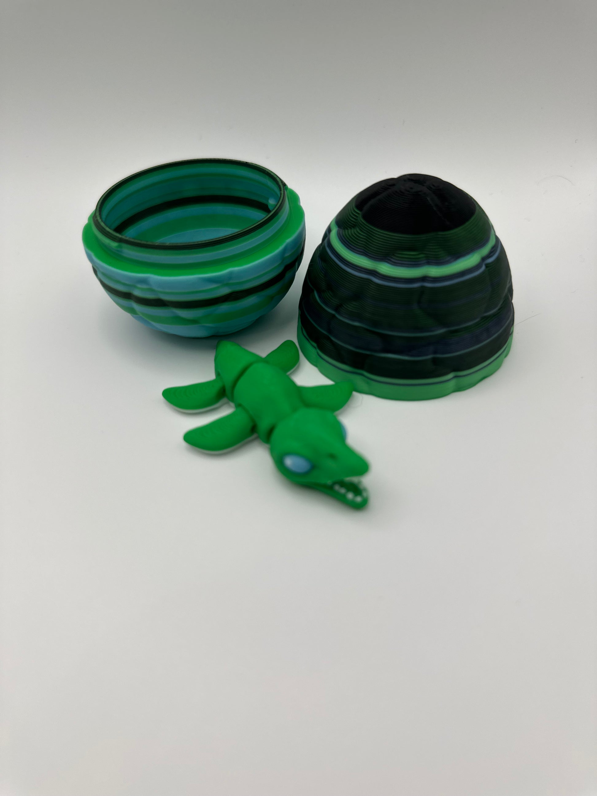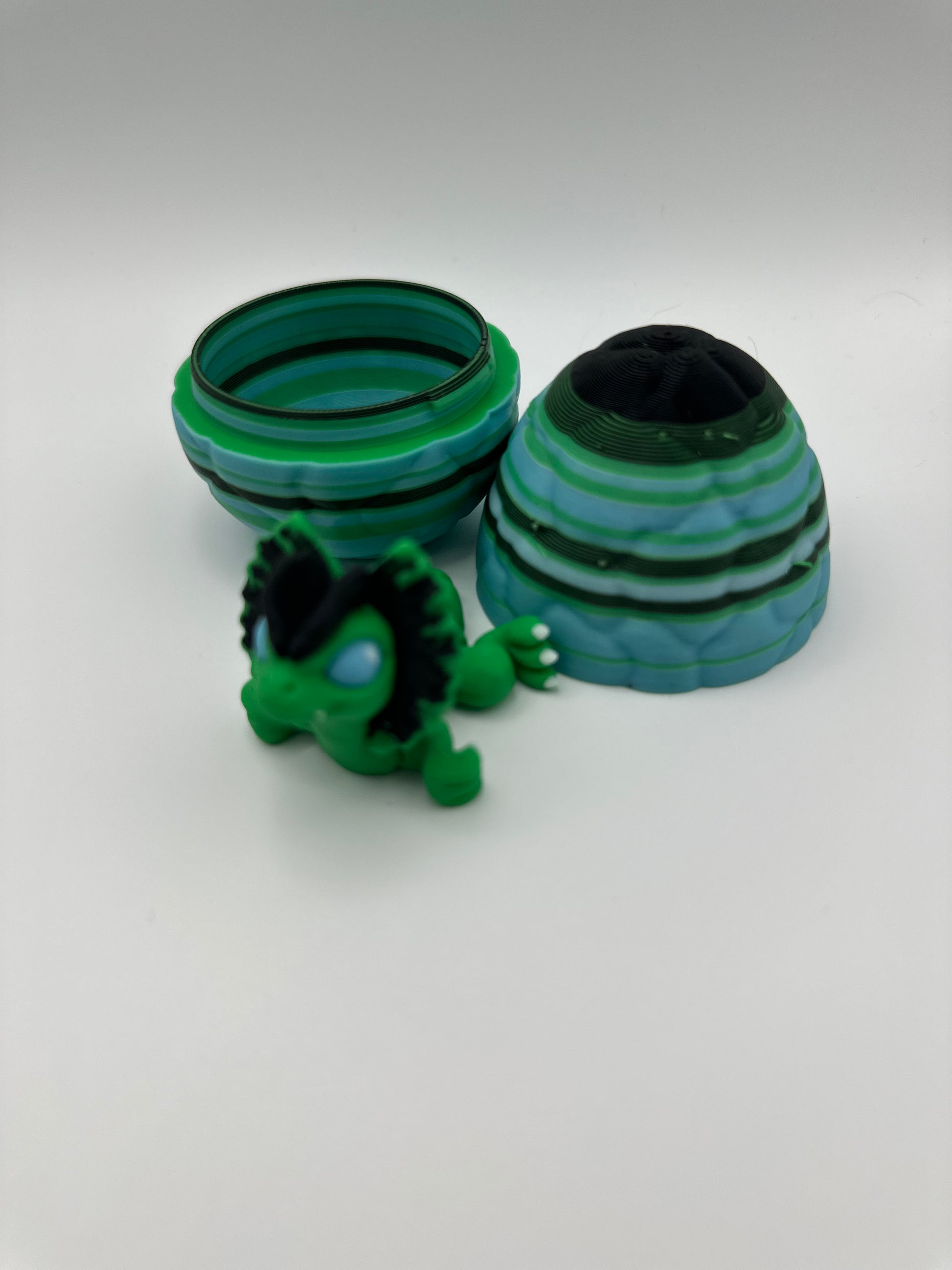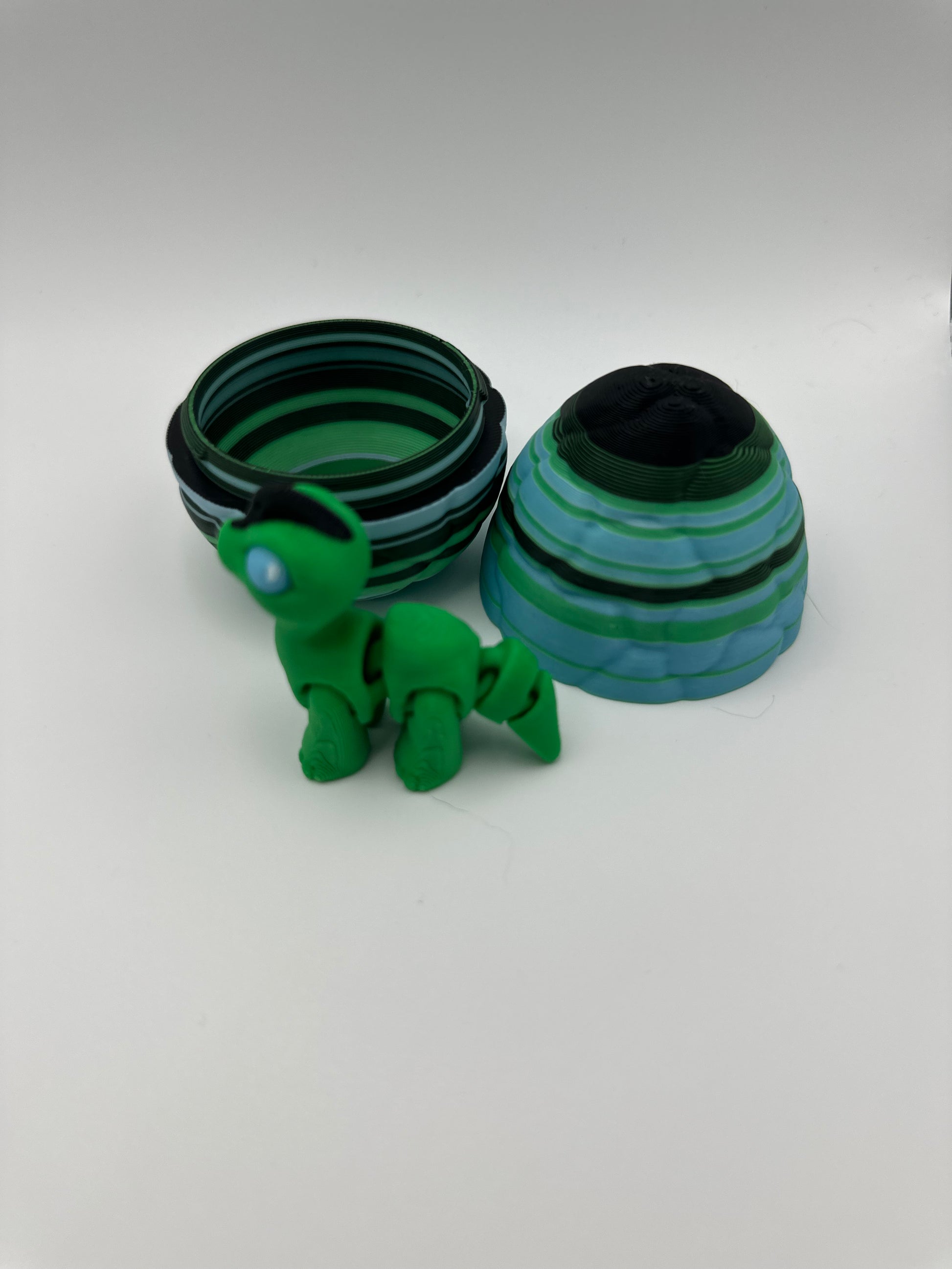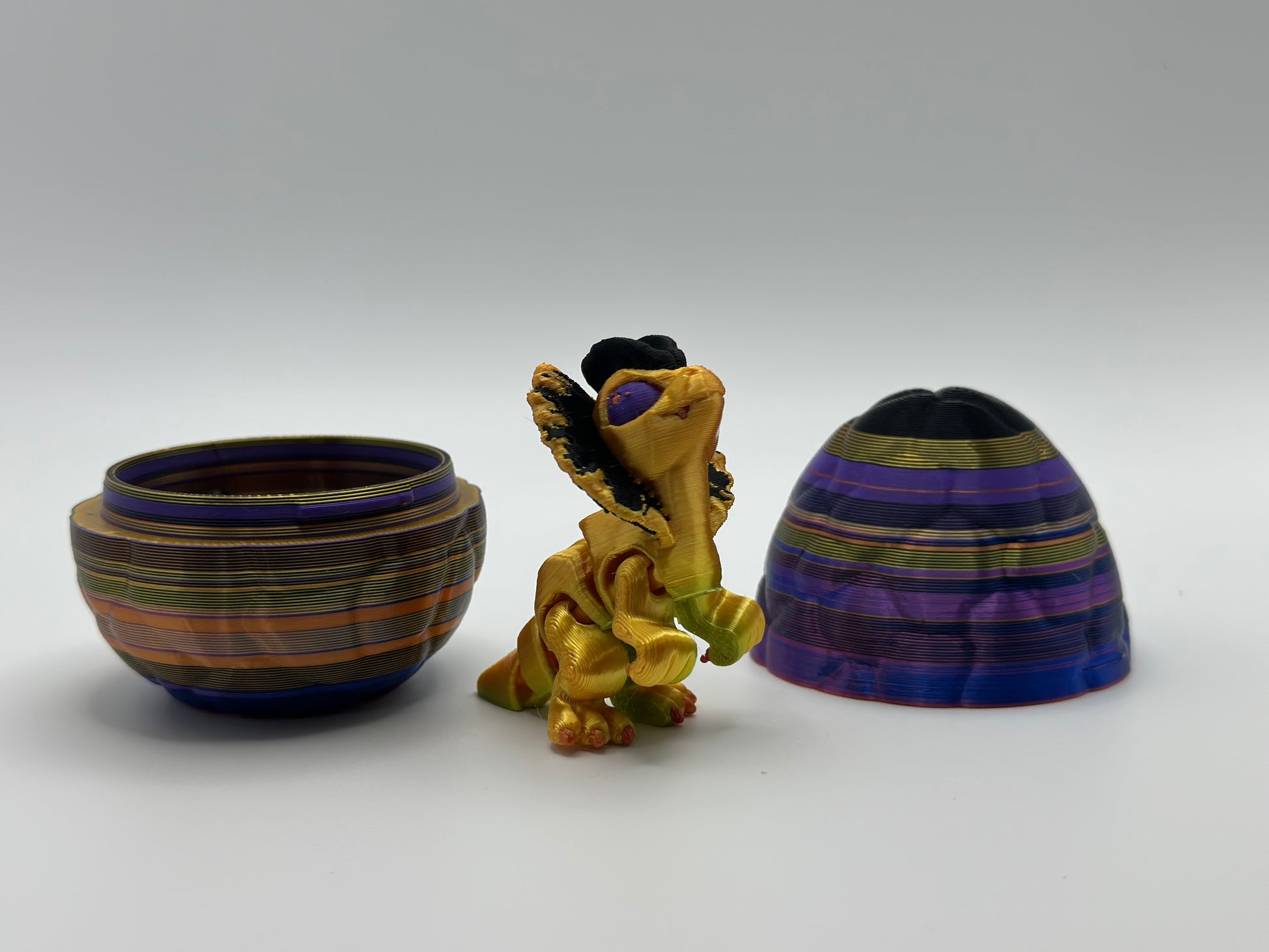 Discover the excitement of unboxing our Mystery Dinosaur Egg! Each 3D printed egg contains one of seven different articulated dinosaurs, waiting inside to be hatched. Compact and egg-citing, approximately 2.25” in diameter and 2.5” tall. What dino will you get? It's a mystery!