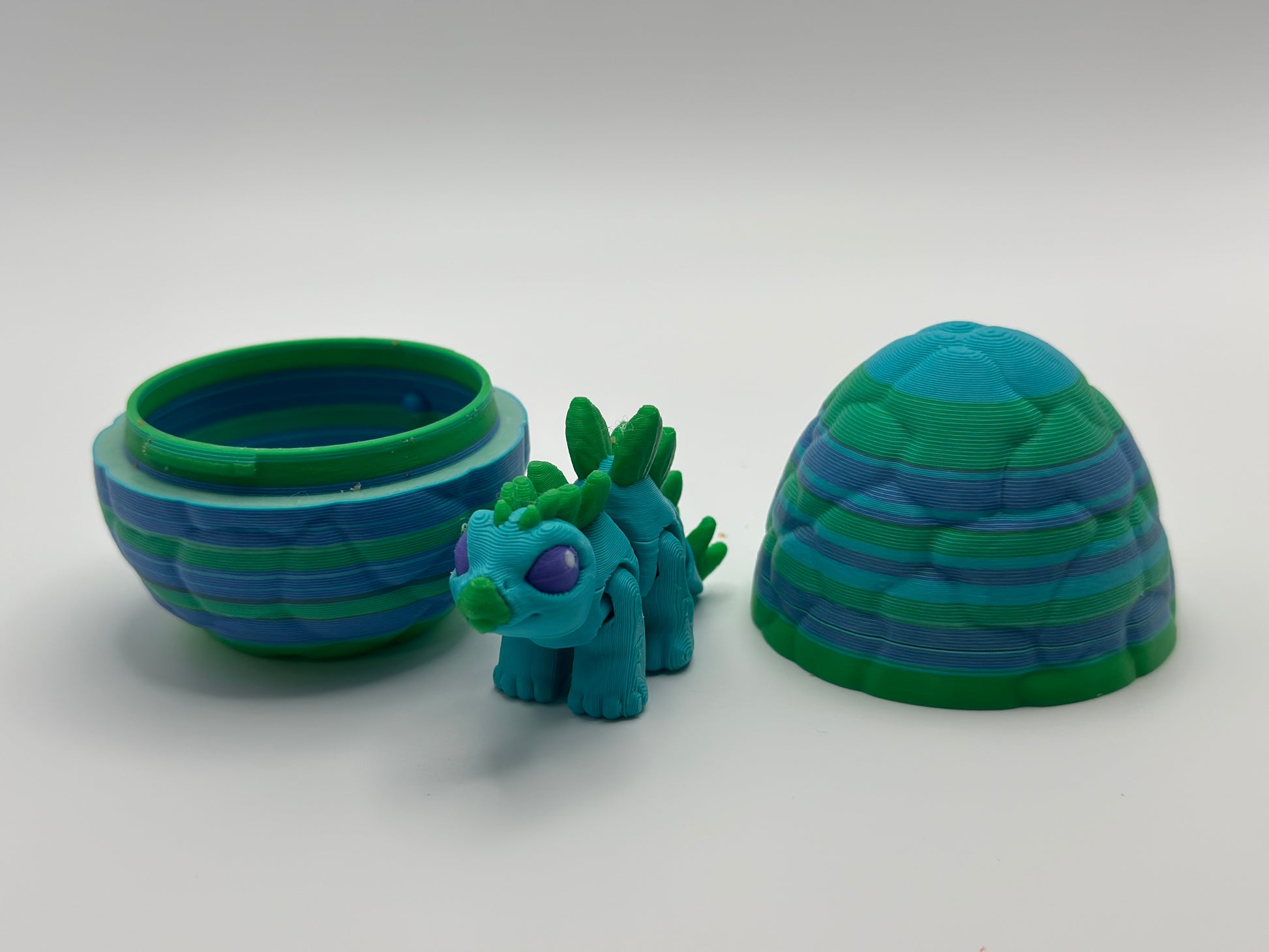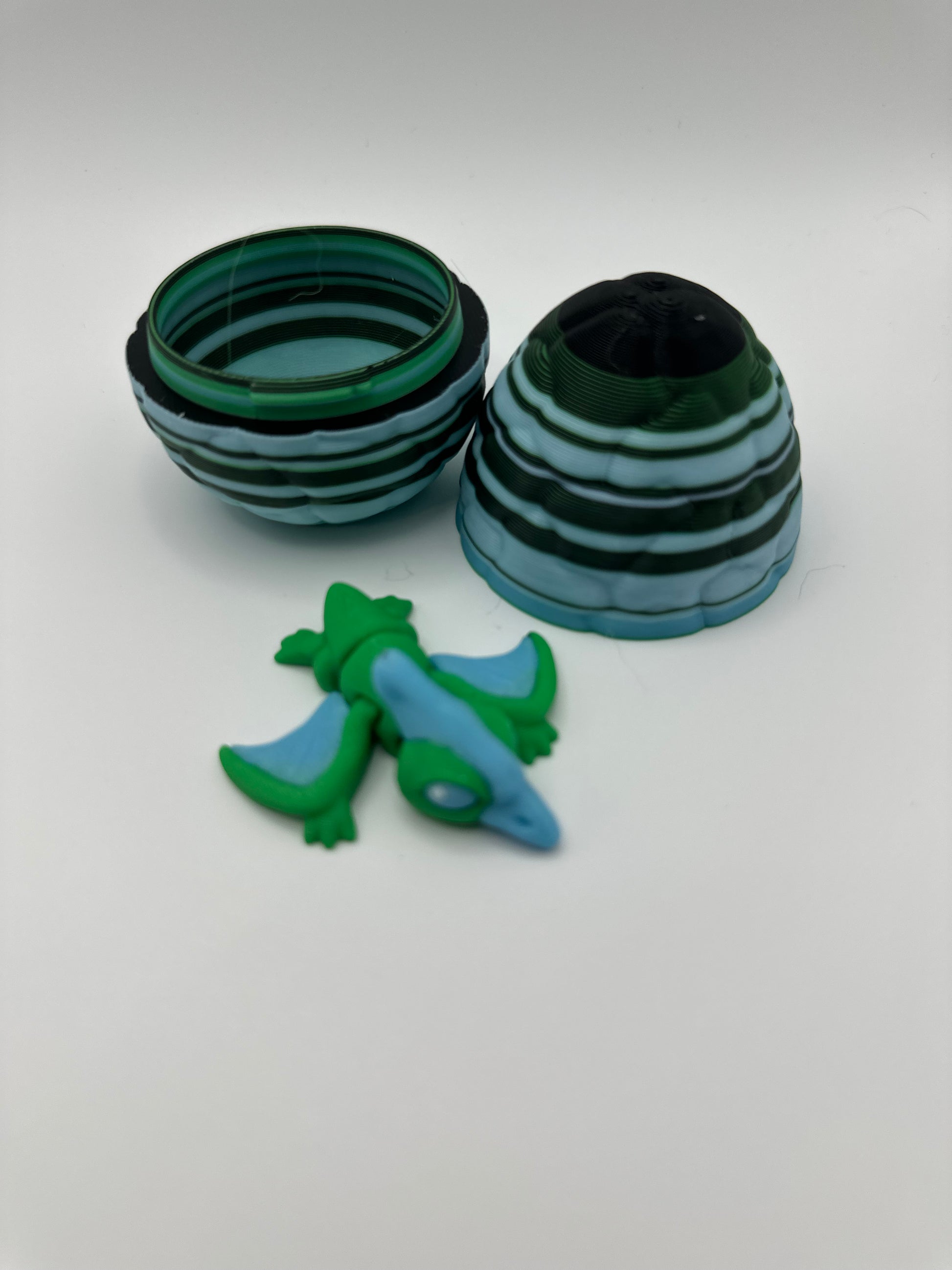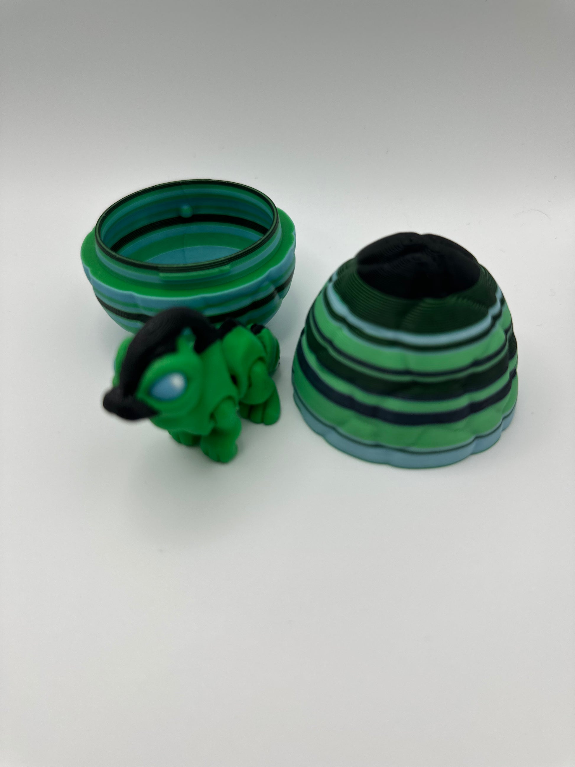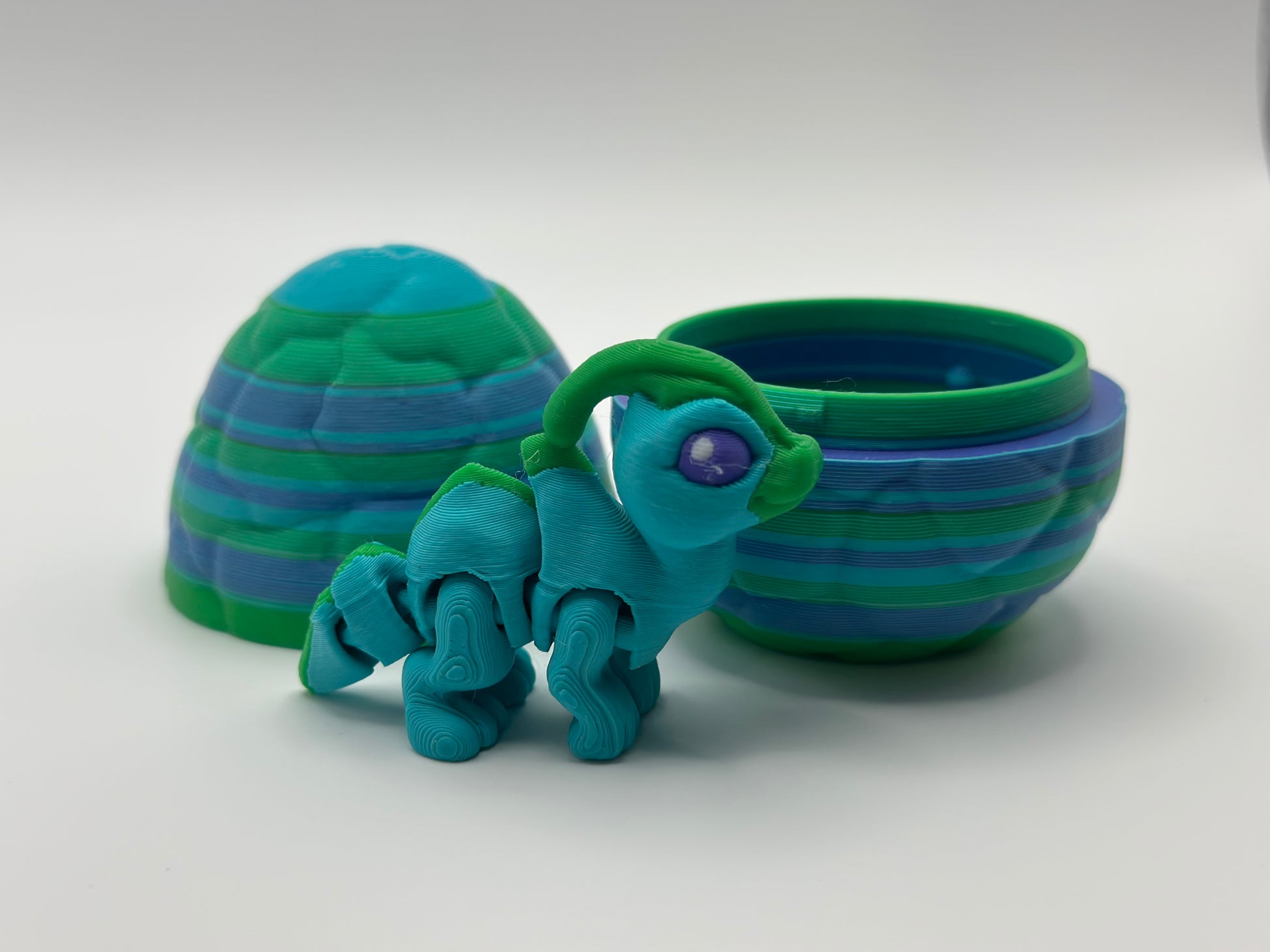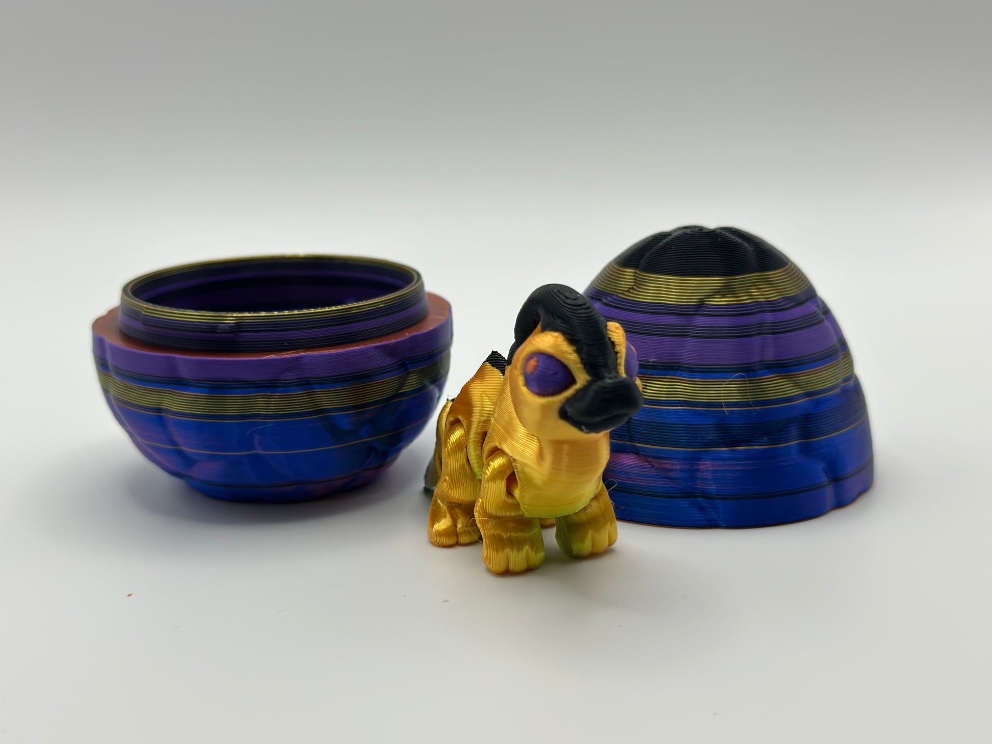 Discover the excitement of unboxing our Mystery Dinosaur Egg! Each 3D printed egg contains one of seven different articulated dinosaurs, waiting inside to be hatched. Compact and egg-citing, approximately 2.25” in diameter and 2.5” tall. What dino will you get? It's a mystery!