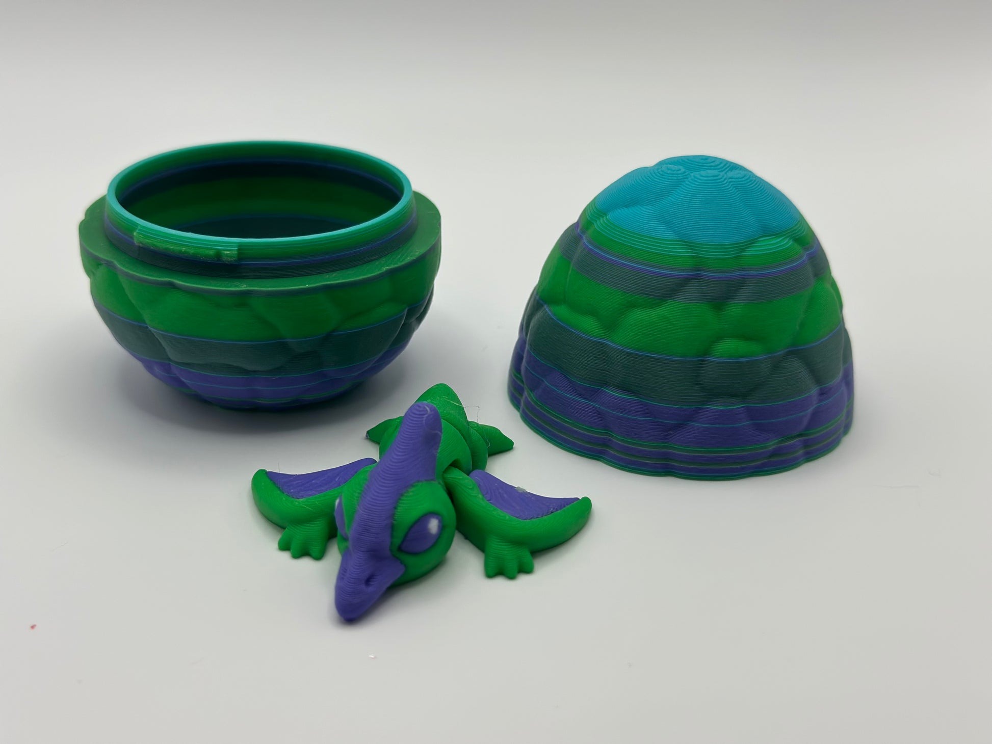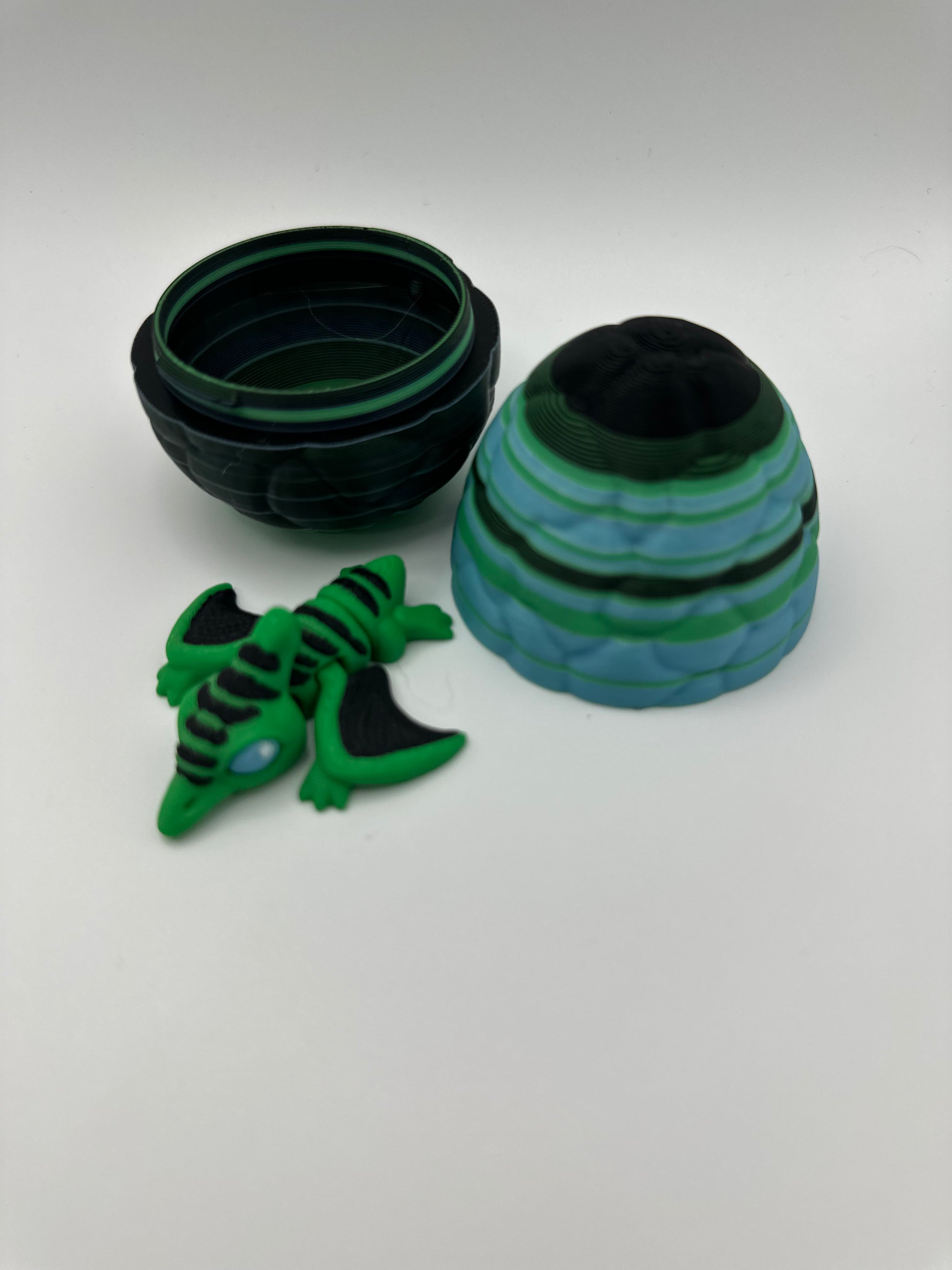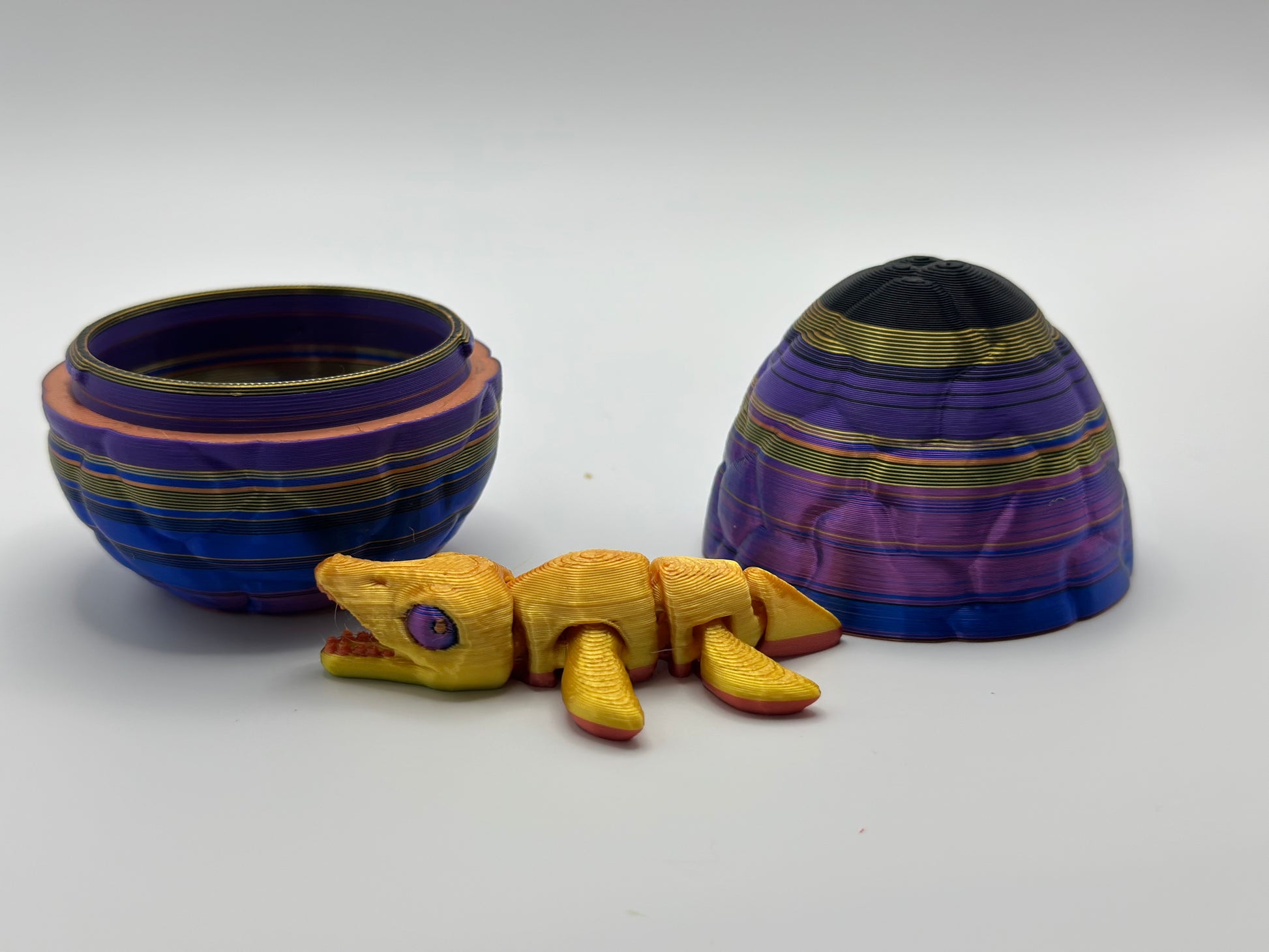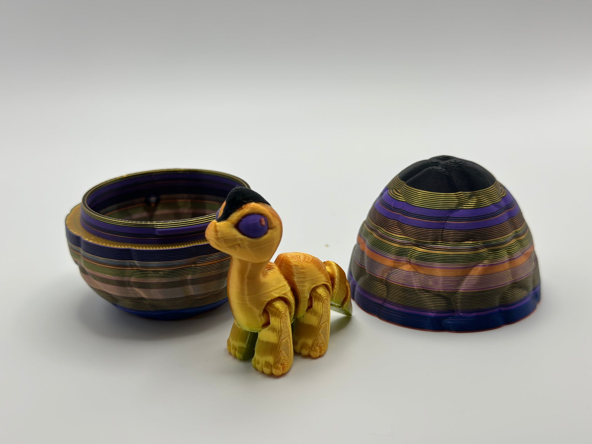 Discover the excitement of unboxing our Mystery Dinosaur Egg! Each 3D printed egg contains one of seven different articulated dinosaurs, waiting inside to be hatched. Compact and egg-citing, approximately 2.25” in diameter and 2.5” tall. What dino will you get? It's a mystery!
