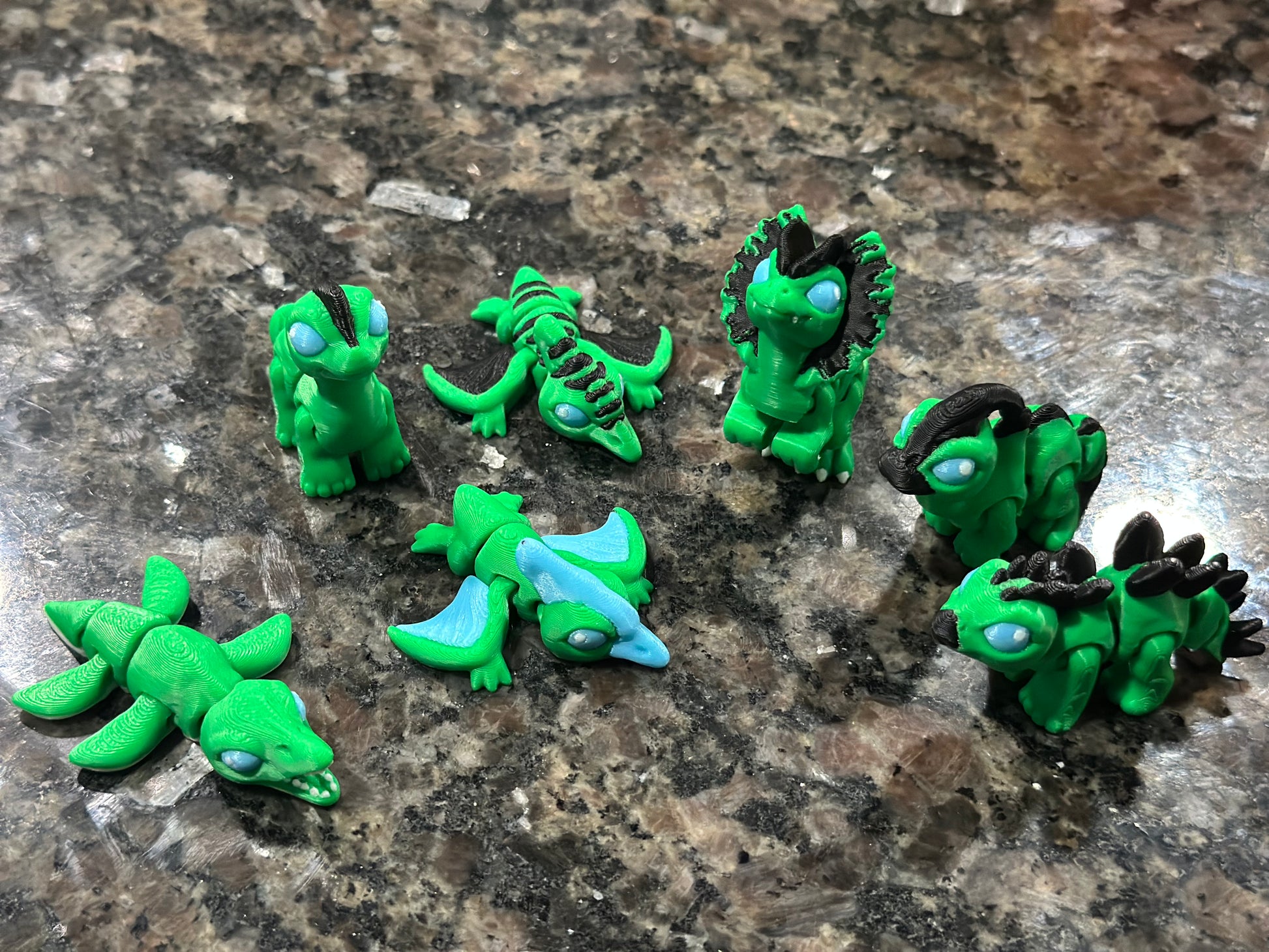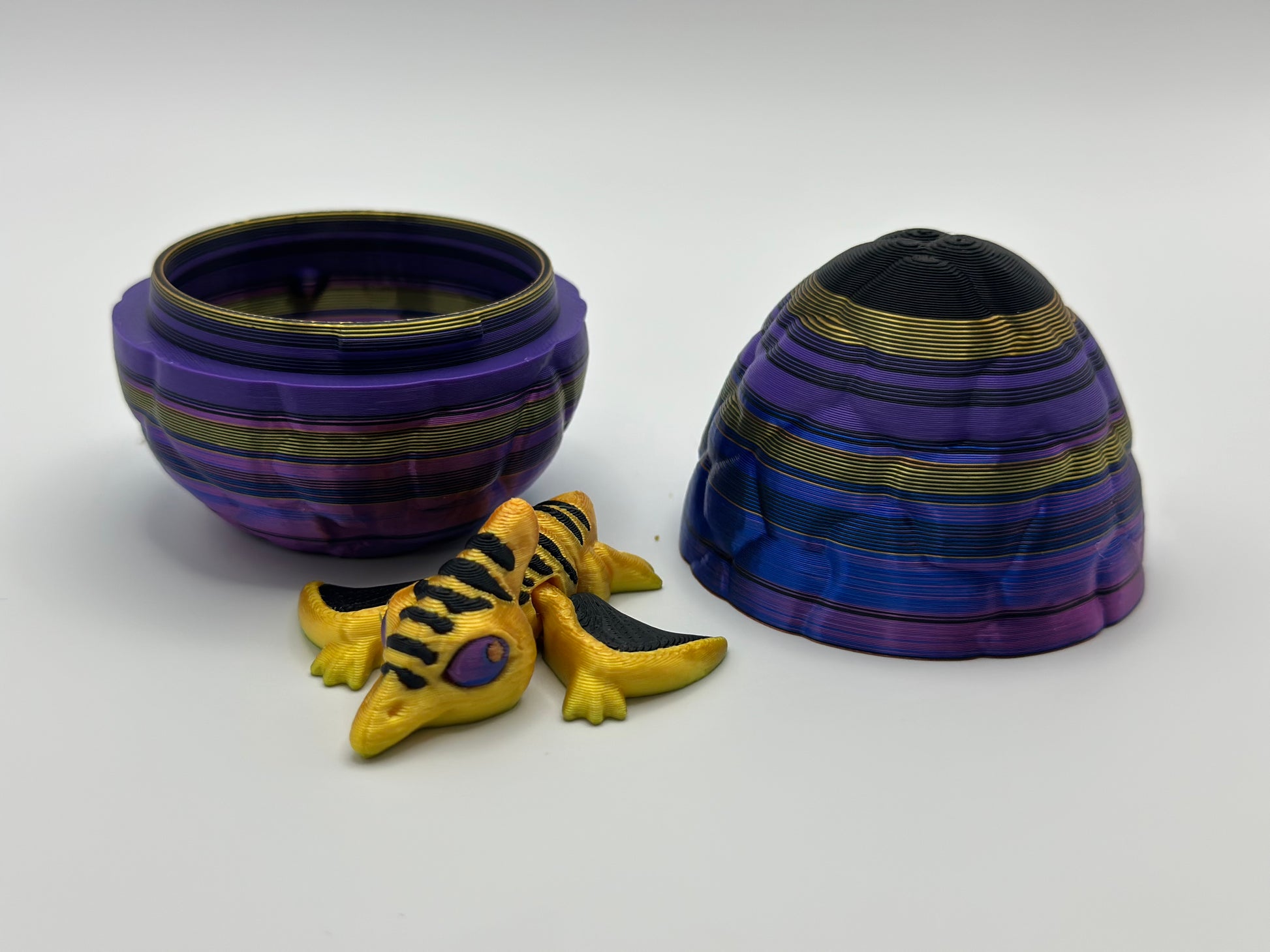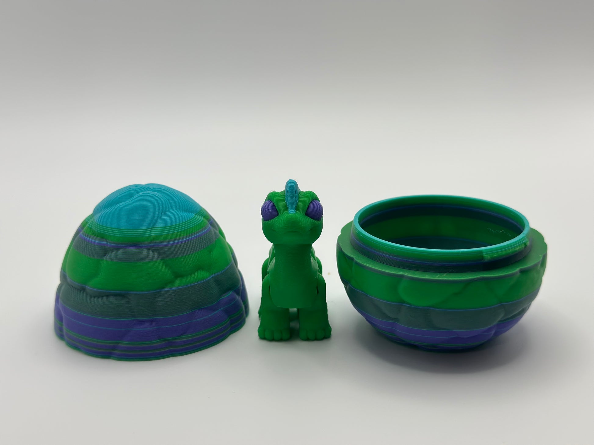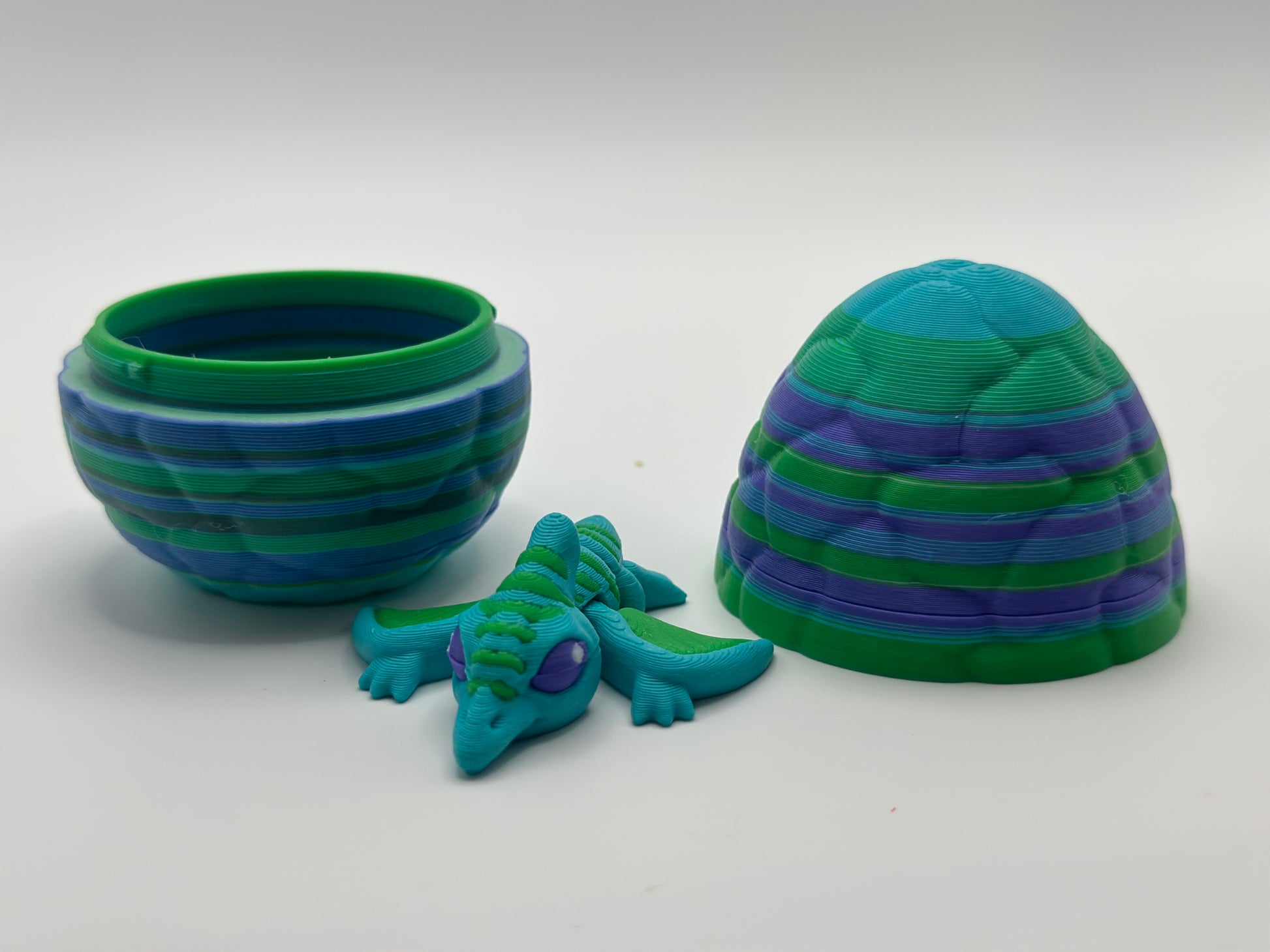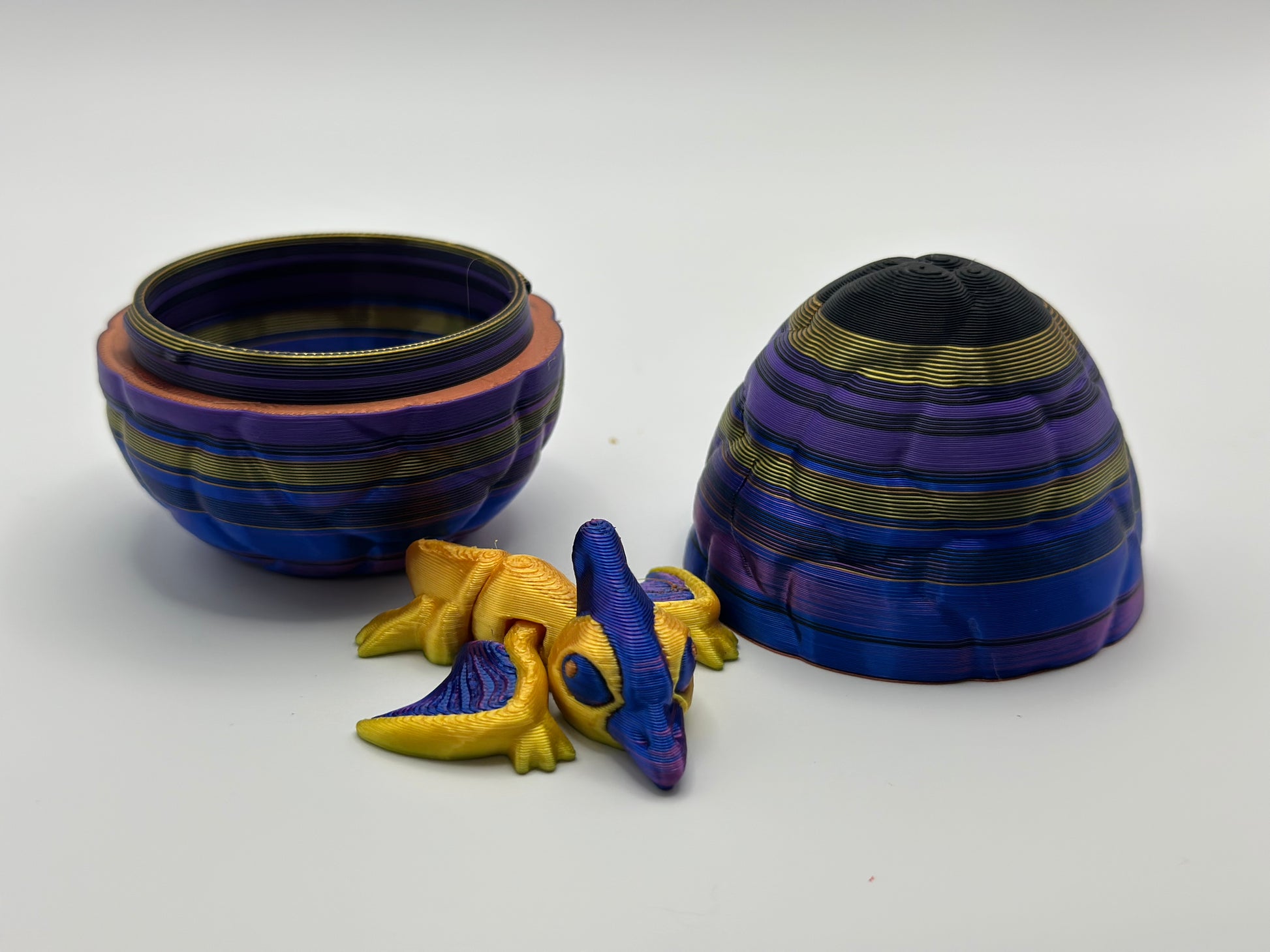 Discover the excitement of unboxing our Mystery Dinosaur Egg! Each 3D printed egg contains one of seven different articulated dinosaurs, waiting inside to be hatched. Compact and egg-citing, approximately 2.25” in diameter and 2.5” tall. What dino will you get? It's a mystery!