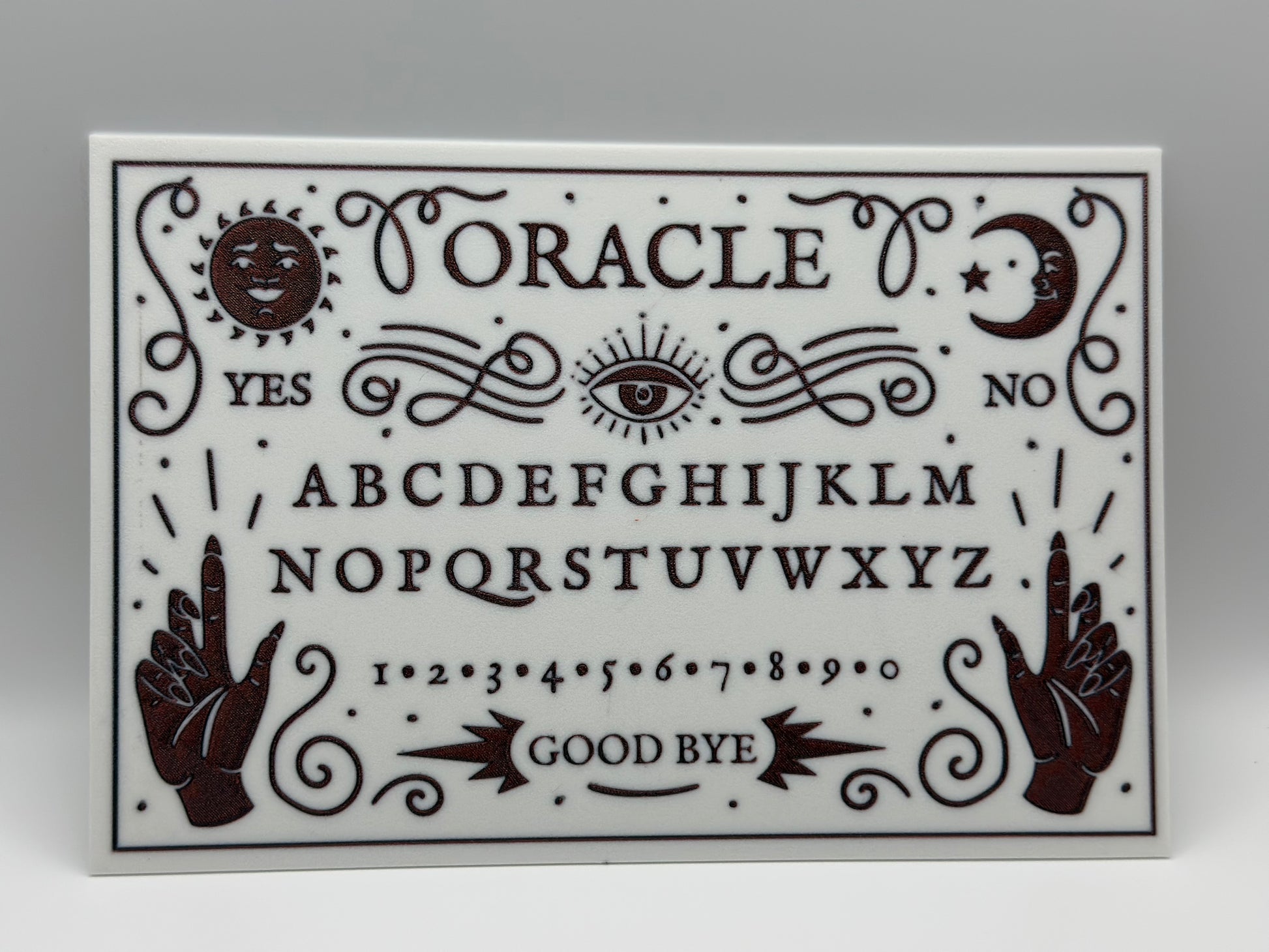 Unlock the mysteries of the spirit world with our 3D printed Ouija board. Made with precision and care, this board allows you to communicate with the other side with ease. Perfect for gatherings and exploring the unknown. Let your curiosity guide you with our Ouija board.
