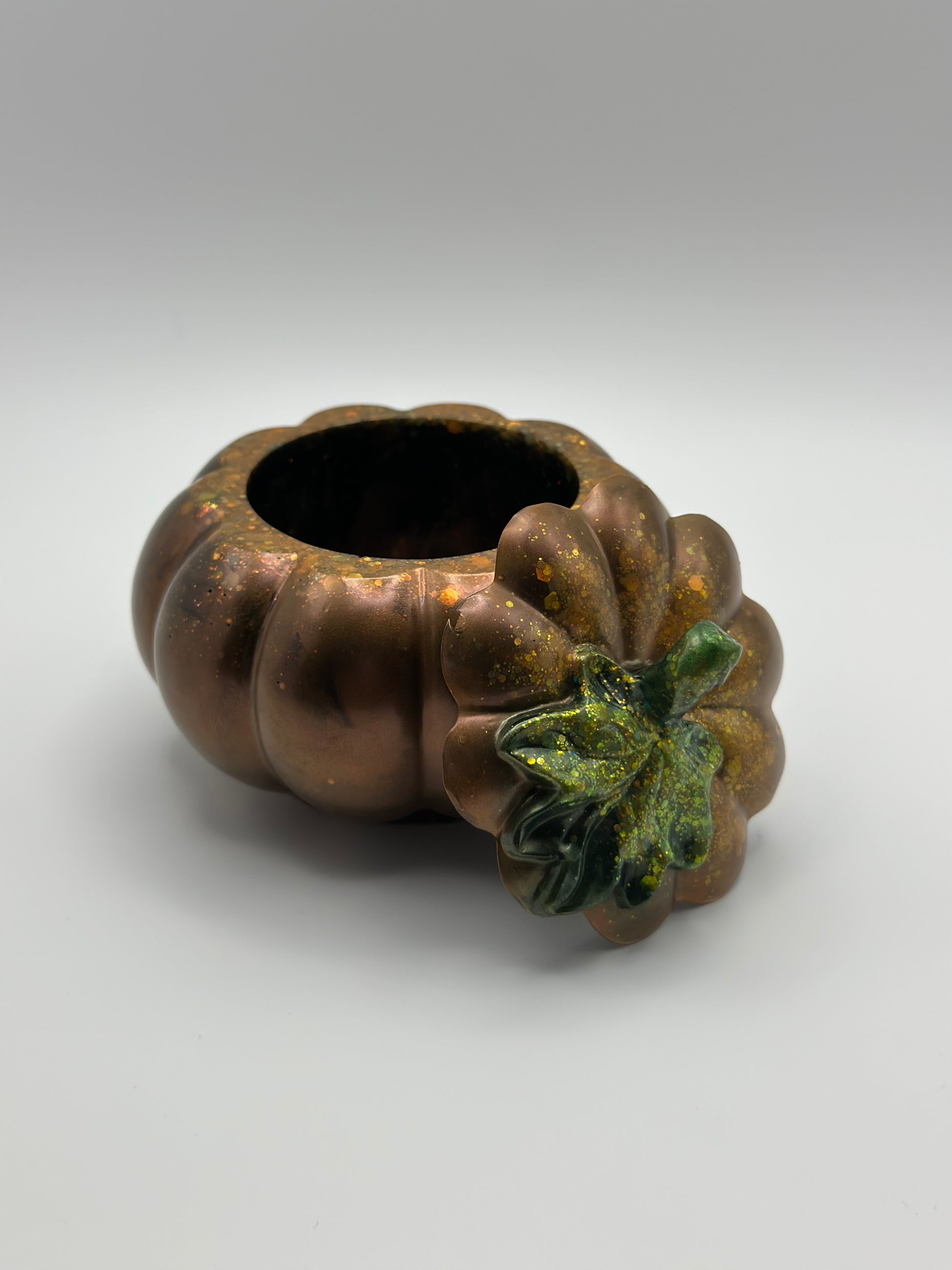 Get into the fall spirit with our Pumpkin Jar! This charming resin jar is pumpkin shaped and measures approximately 3.75” in diameter and 3.5” tall. Perfect for storing candies, trinkets, or as a decorative piece for your home. Don't miss out on this festive addition to your autumn collection!