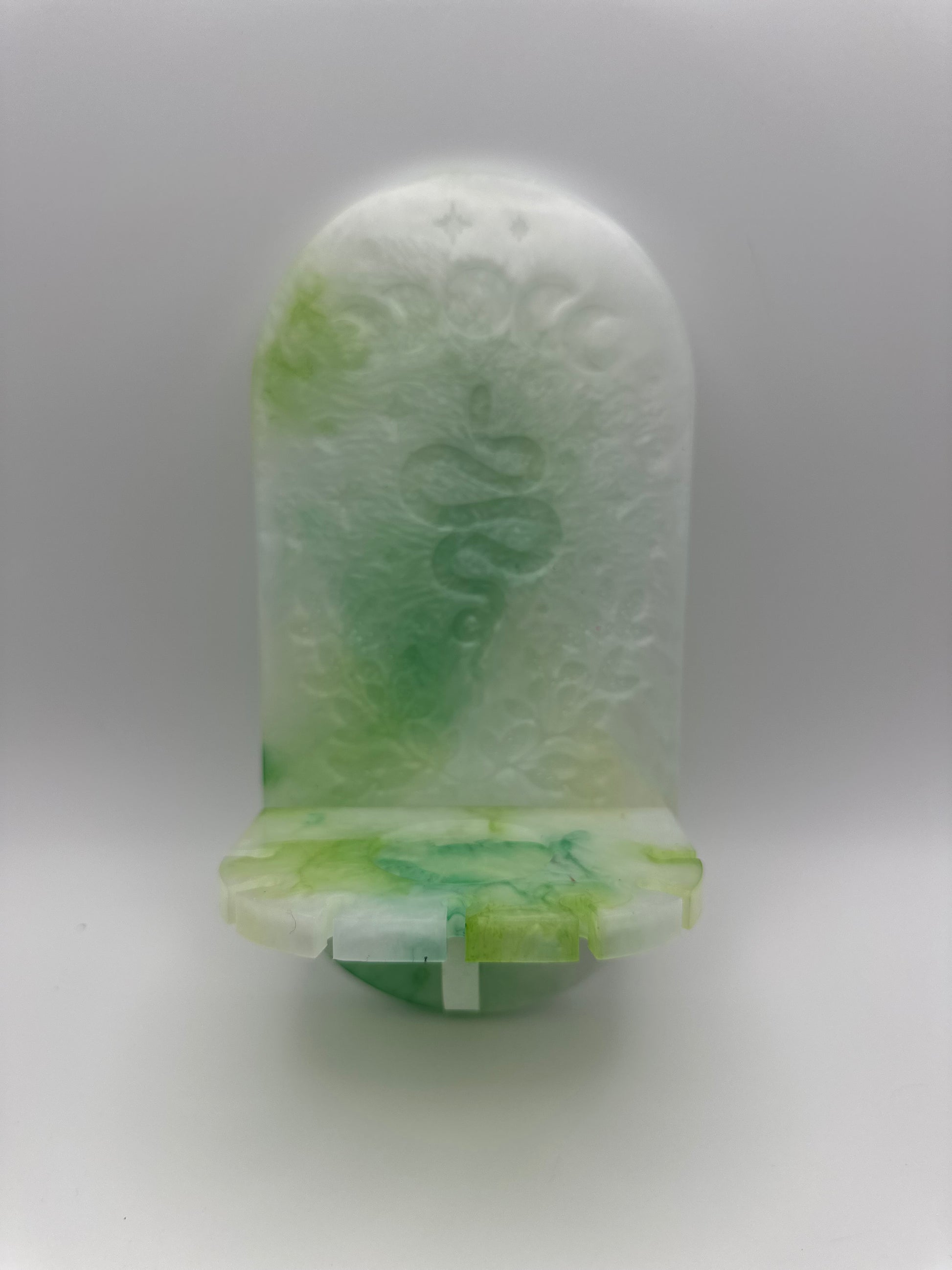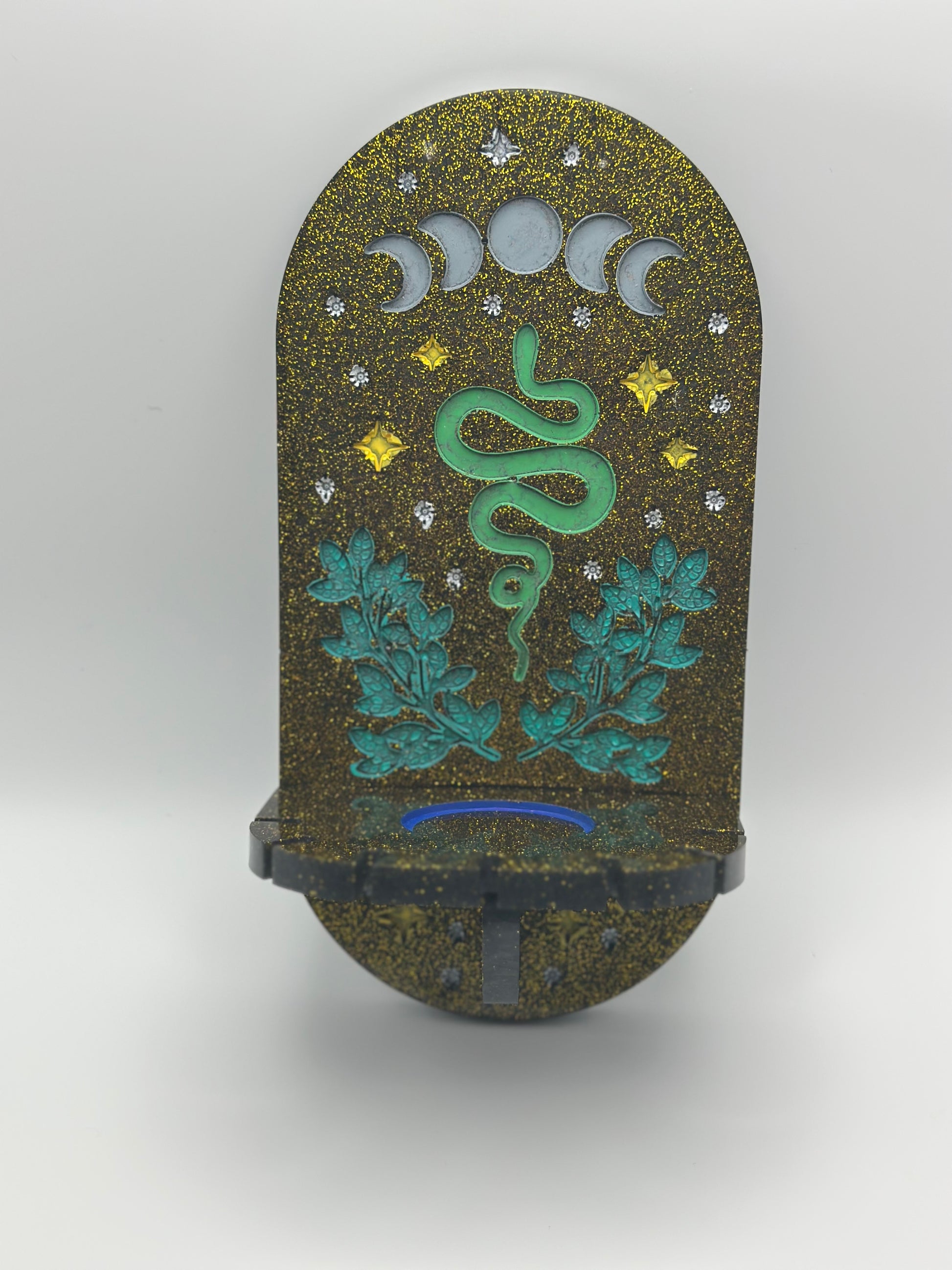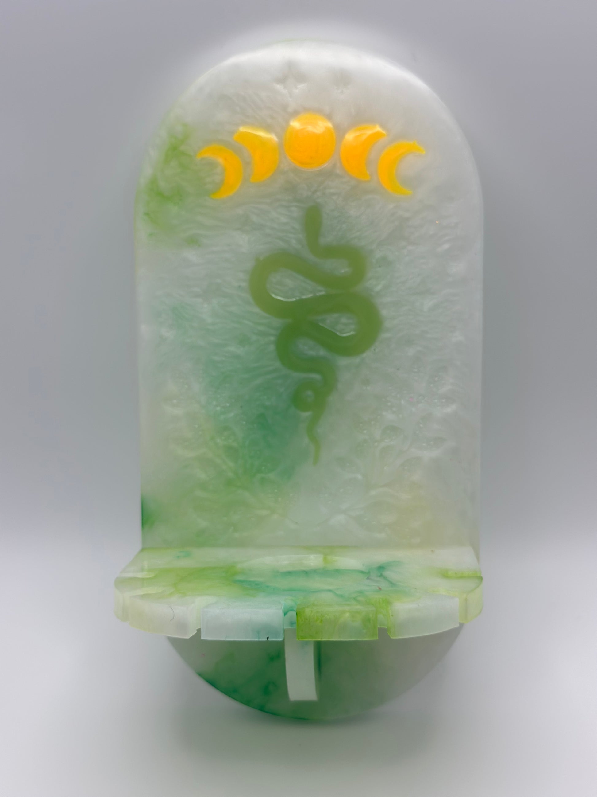 Elevate your space with our Snake Shelf - a stunning resin piece featuring a mesmerizing snake design. Perfect for holding votive or tea lights, as well as your favorite necklaces or pendulums. A functional and artistic addition for any room.