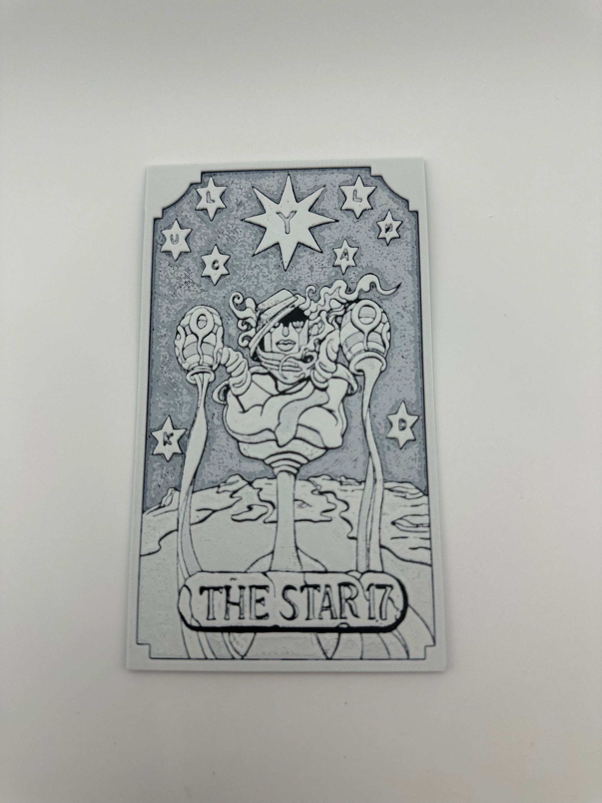 Experience the power of the divine with our Star Card. This single card, featuring intricate 3d printing, is part of the major arcana and measures approximately 2.95” x 5.12” x 0.09”. Awaken your intuition and gain clarity with each use.