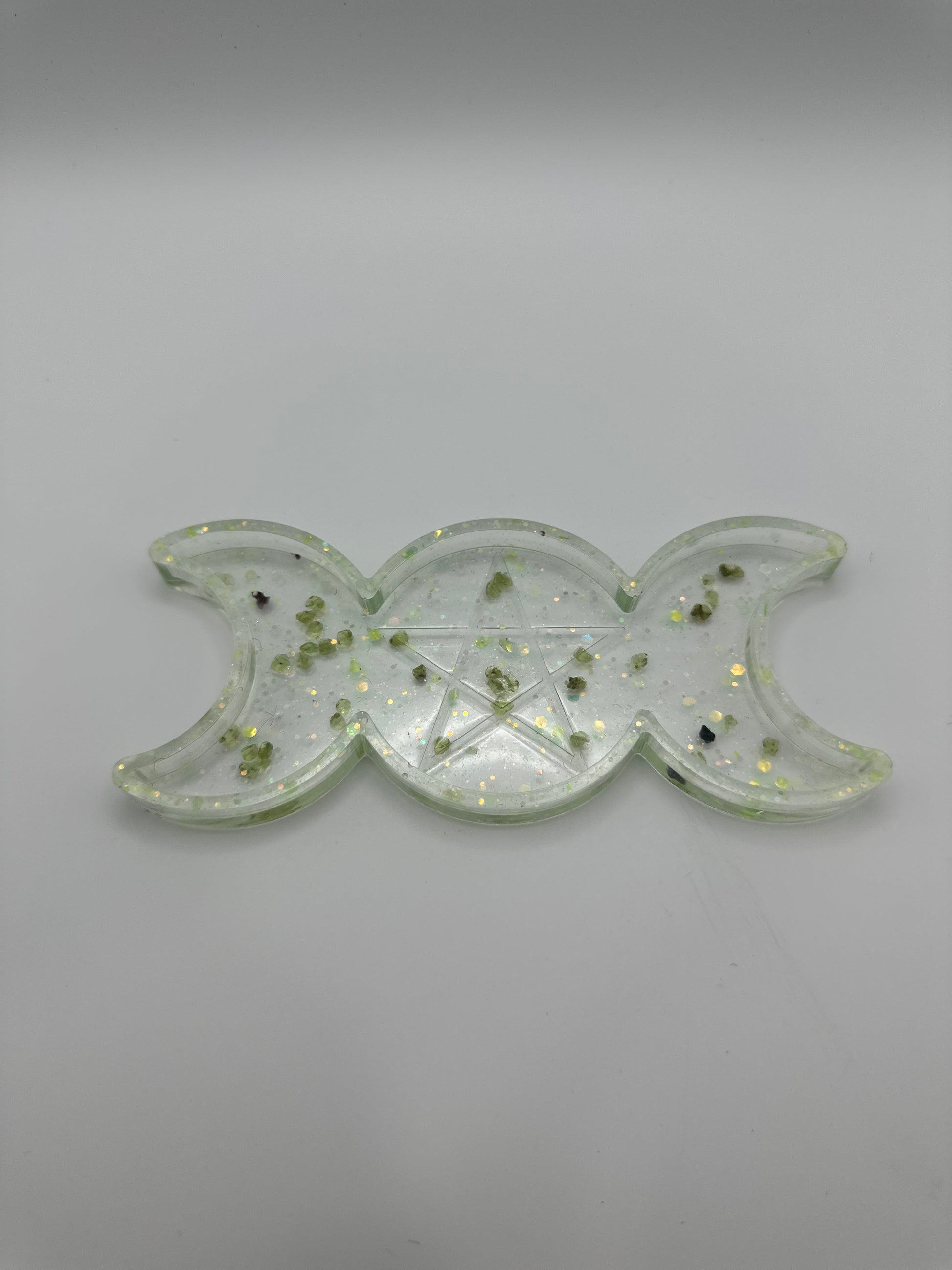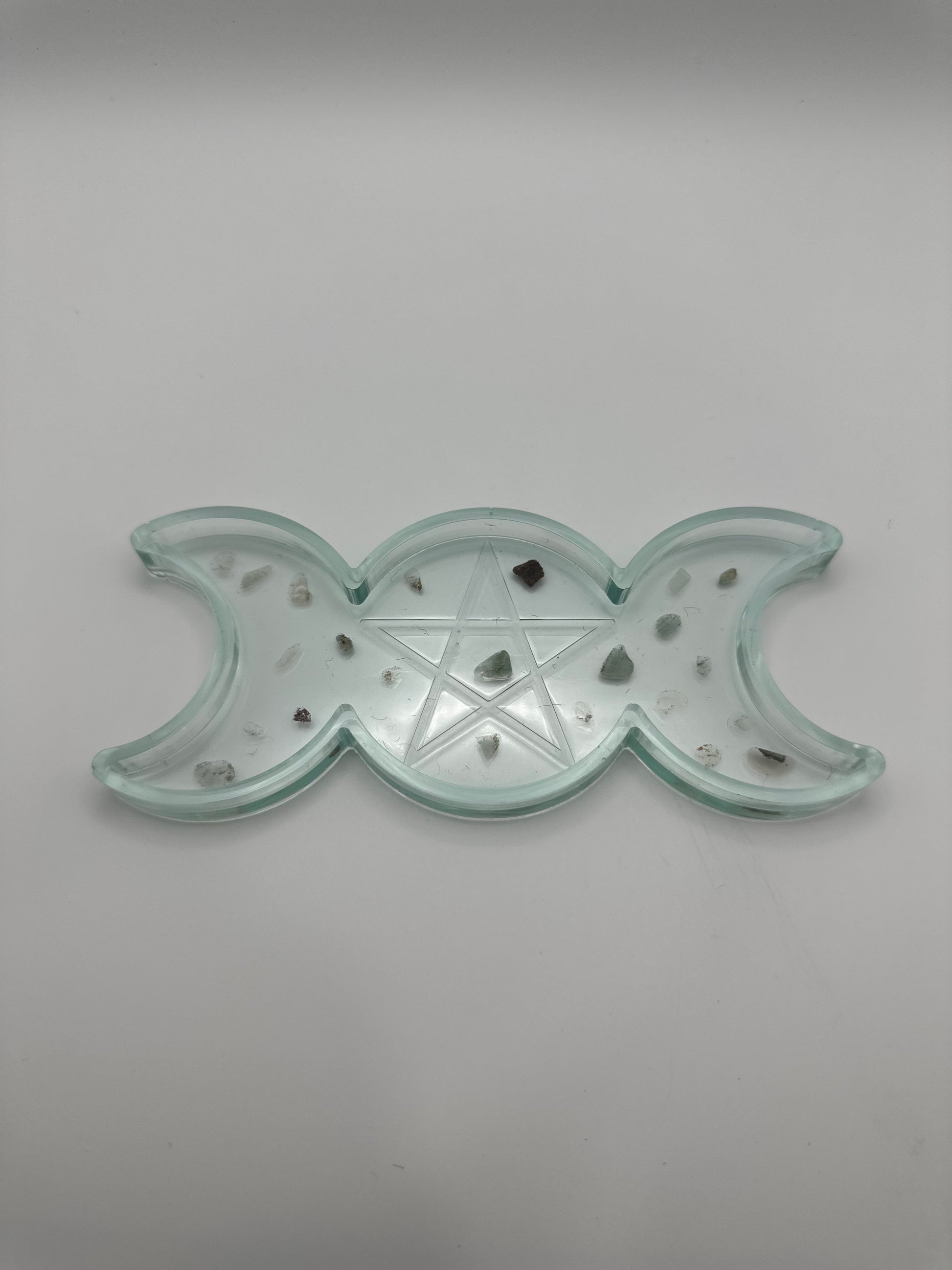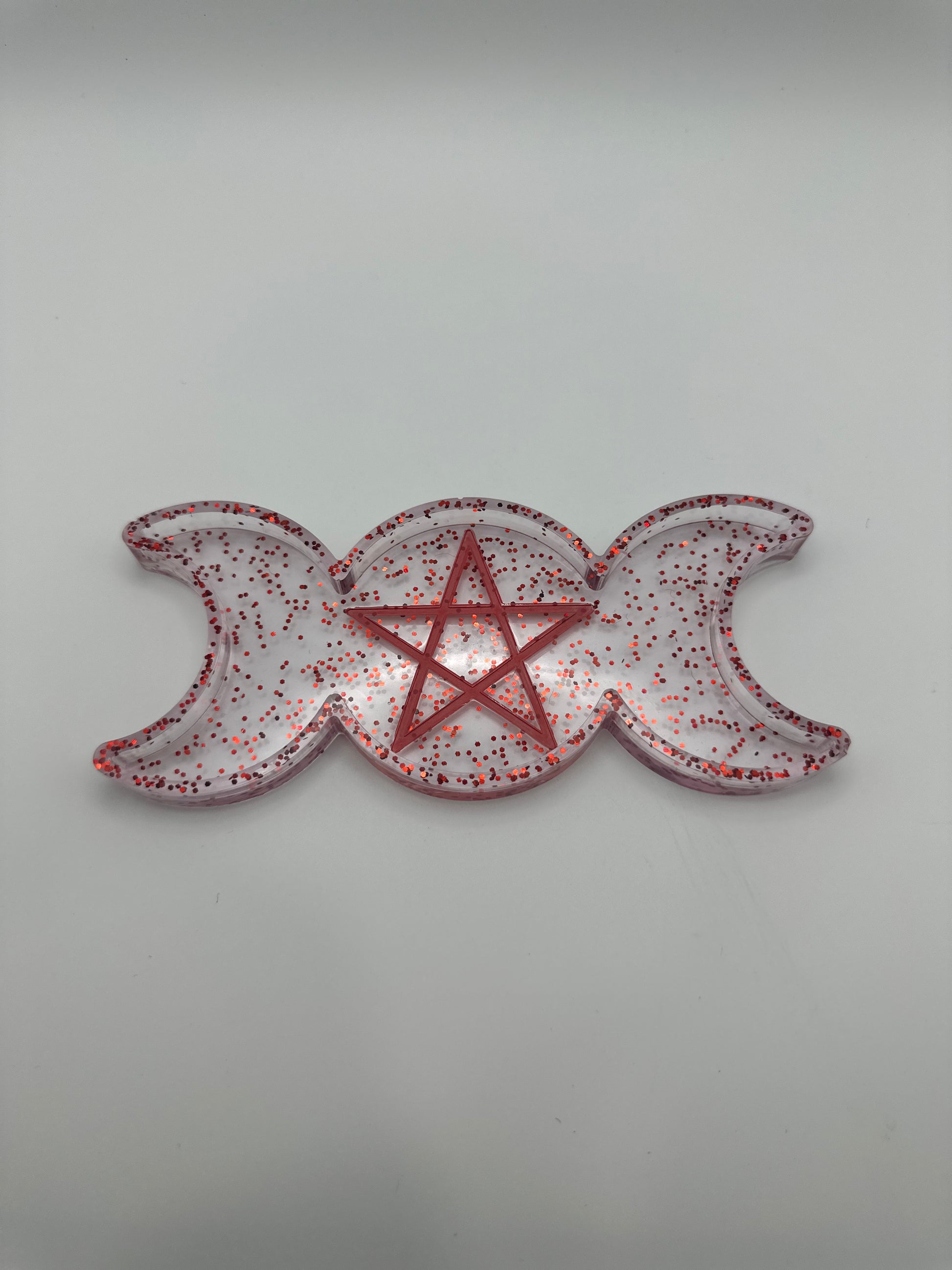 Bring a touch of magic to your home with our Triple Moon Tray! Handcrafted from high-quality resin, this tray features a triple moon design with a pentagram in the center. Perfect for storing and displaying your favorite trinkets and treasures. A must-have for any witchy or spiritual aesthetic.