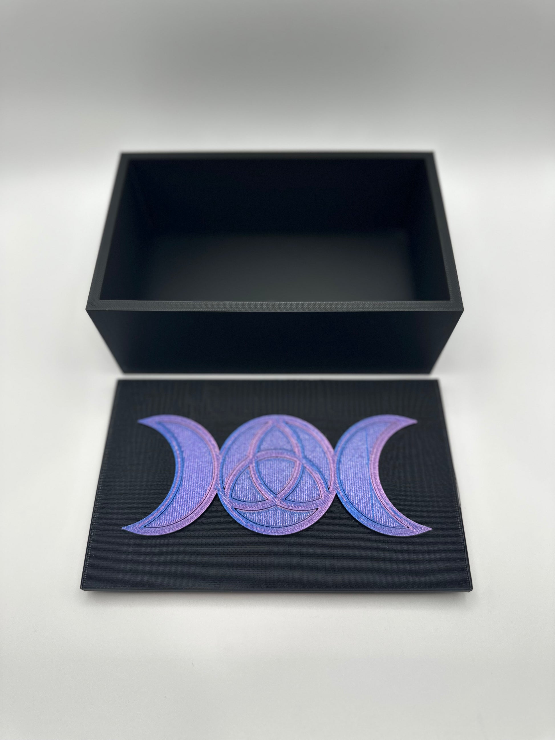 Experience the power of the Triple Moon Triqueta Box with its intricate 3d printed design and symbolic triple moon and triqueta patterns. Store your most treasured possessions in this beautiful box that represents the cycles of the moon and the interconnectedness of all things. Perfect for any spiritual or mystical individual.