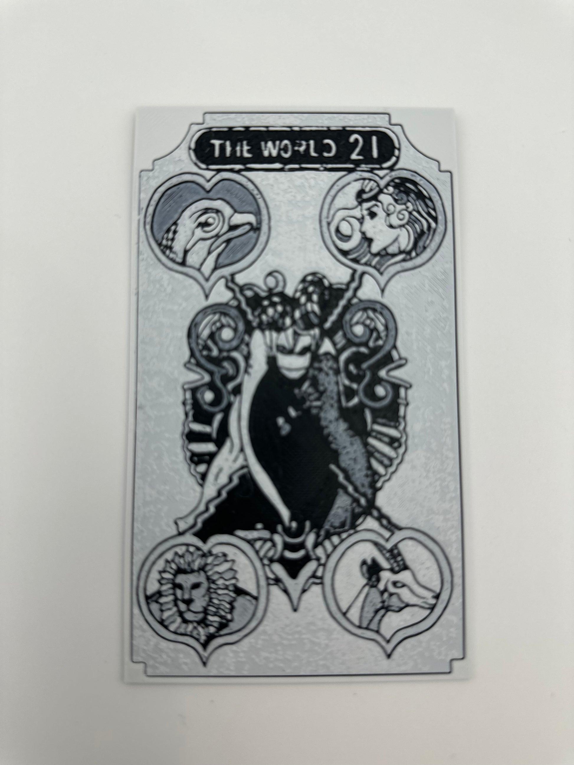 Discover the power of the World Card! This single 3D-printed major arcana card measures approximately 2.95” x 5.12” x 0.09”, offering a tangible connection to the mysteries of the universe. Embrace its transformative energy and unlock new possibilities in your life.